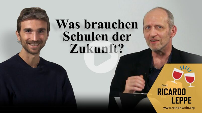 Im zweiten Teil des „Reiner Wein“-Gesprächs zwischen Gunther Sosna und dem Zauberer und Gedächtnistrainer Ricardo Leppe geht es um das Bauen von „Schulen der Zukunft“. Leppe unterstützt mit seinem Verein „Wissen schafft Freiheit“ das Errichten solcher Bildungseinrichtungen. Der erste Schritt ist in aktuellen Schulen umsetzbar: dabei werden Lerntechniken genutzt, die das Lernen schneller machen. Die restliche Zeit wird genutzt, um mit den Kindern Dinge zu machen, die ihnen Spaß machen. Der zweite Schritt erfordert mehr Freiheit, die im aktuellen System nicht möglich ist. In der fernen Zukunft steht dann „ein Dürfen“ und nicht „ein Müssen“ im Vordergrund.