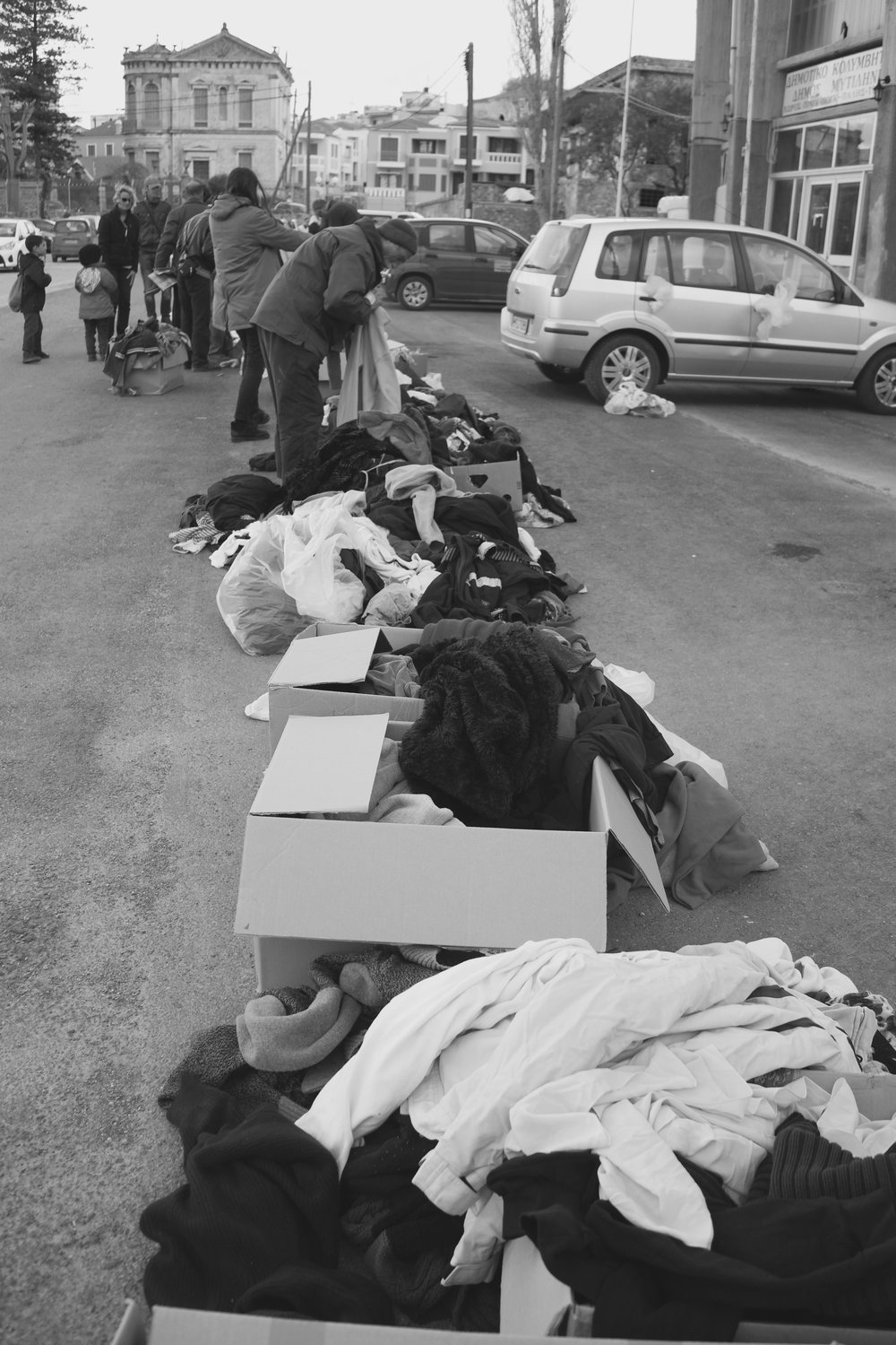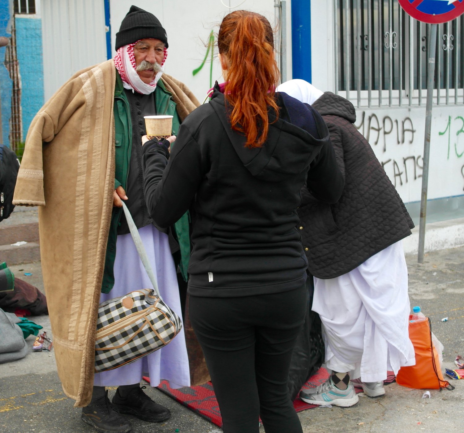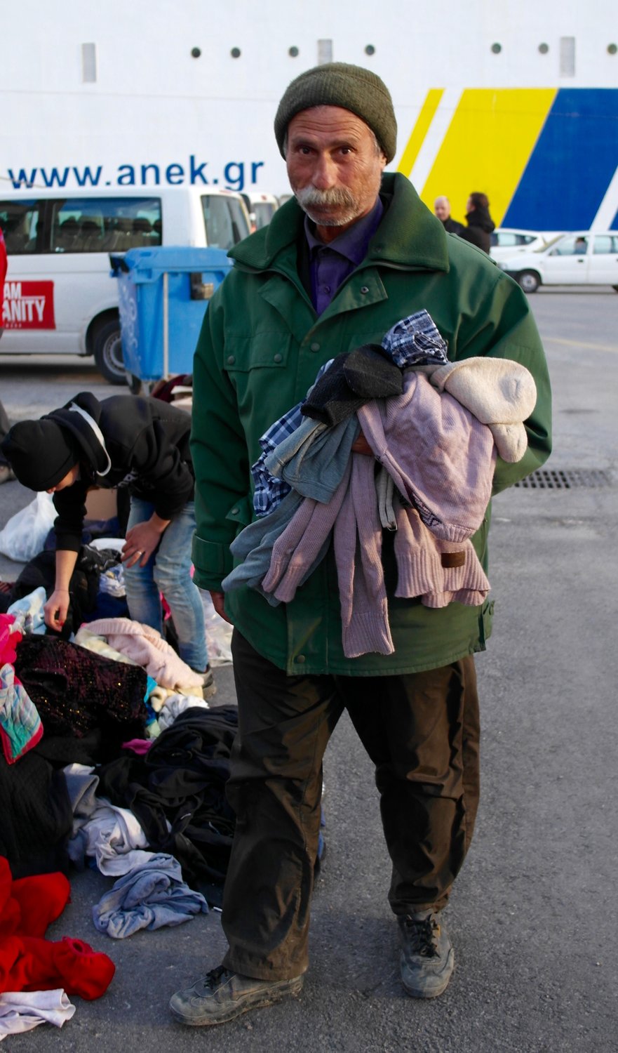 Jeden Tag treffen sich um 16:00 Uhr mehrere Volontäre, um am Hafen Essen, Trinken, Kleider, Windeln, Kinderwägen, Rucksäcke, Schuhe usw. auszugeben – und zeitgleich wird medizinische Hilfe geleistet.
