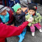 Man sieht mehrere Volontäre, die durch die Reihen gehen, um Snacks und Tee auszuteilen. Ich nutze diese Chance, um die Kinder ein bisschen zu unterhalten und aufzumuntern. Als ich ihnen zeige, wie man Seifenblasen macht, konnte ich dem einigen Kindern auch ein Lächeln ins Gesicht zaubern. Ein kleines Mädchen aber, das mit ihrem Bruder da steht, kann ich leider nicht glücklich stimmen.