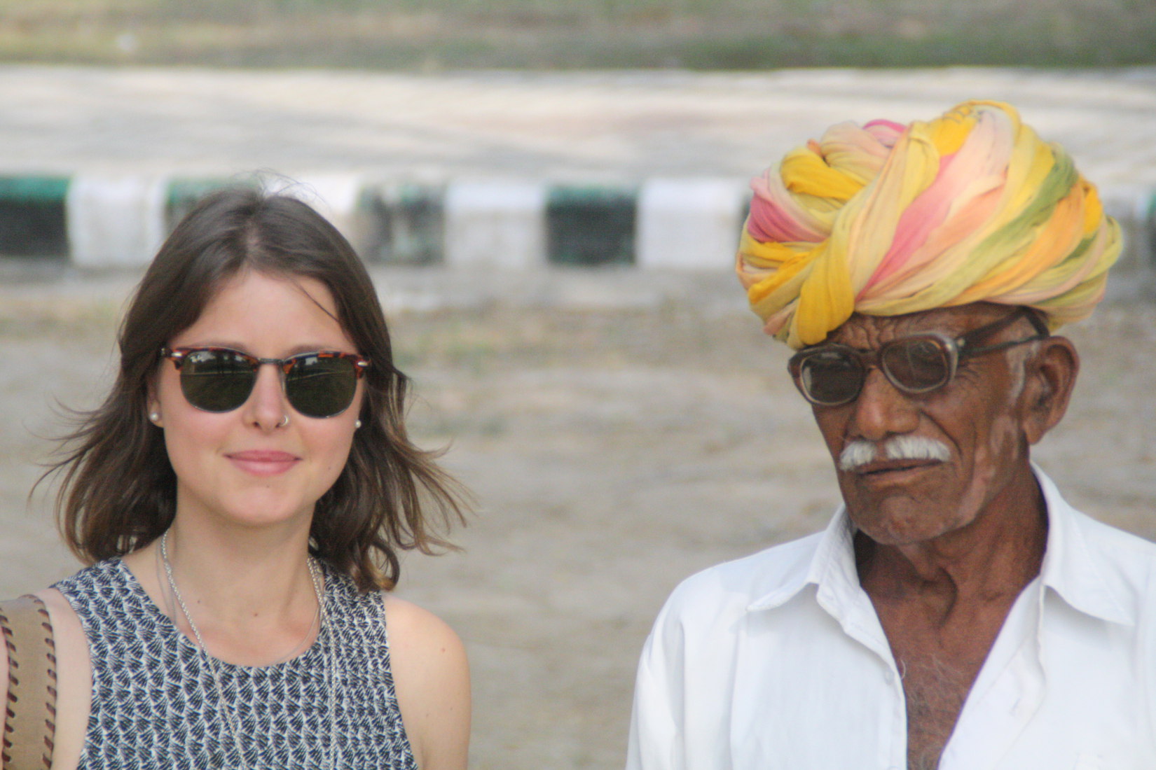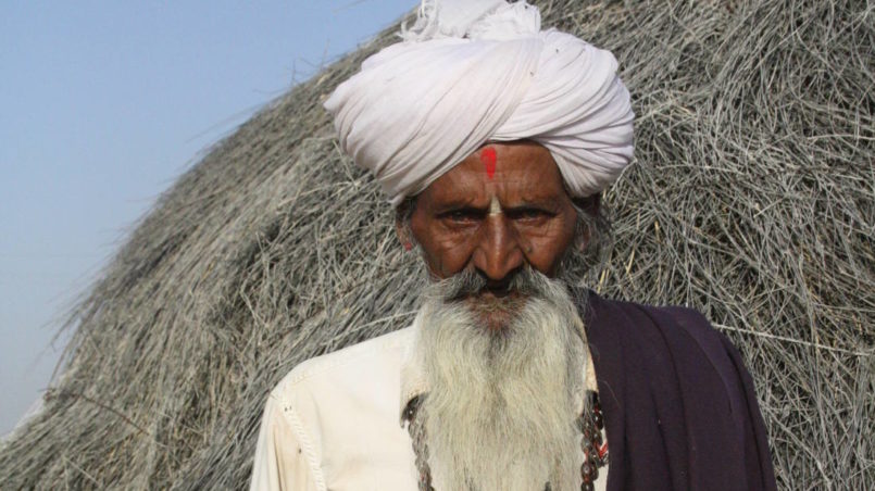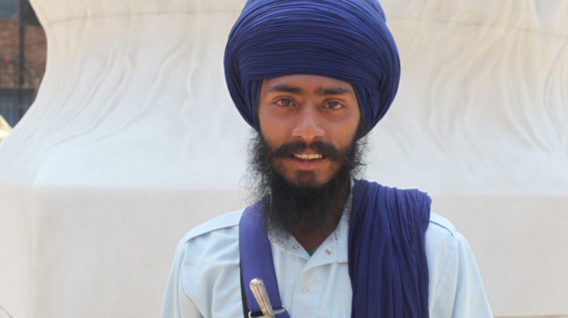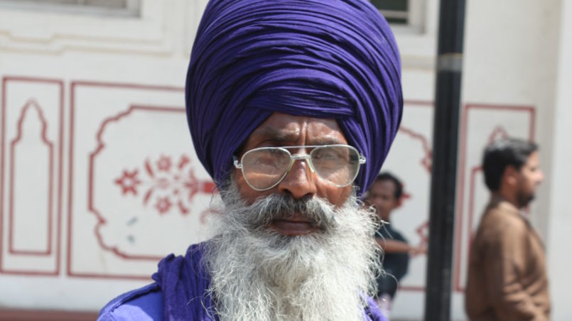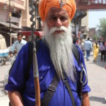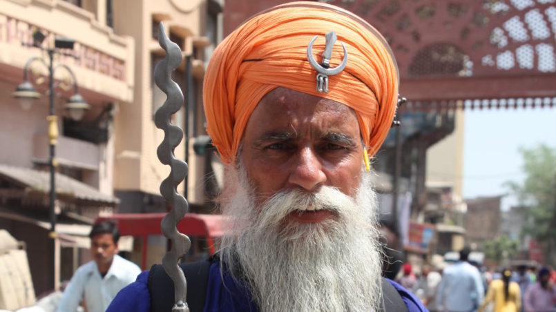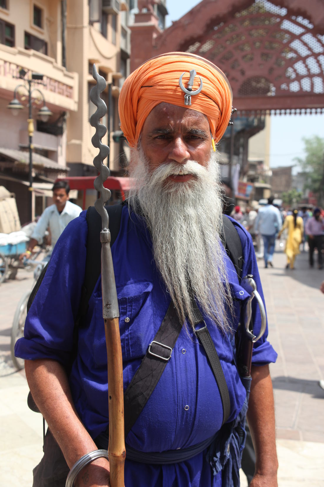 Einen Turban trägt man in Indien übrigens wegen der extremen Hitze oder bei Kälte. Oder drittens: Weil man der Religion des Sikhismus angehört. Die Sikhs dürfen auch kein Haar an ihrem Körper abrasieren. Sie tragen einen Turban, manchmal einen Speer, ein Messer oder ein Schwert, da sie zum Stamm der Krieger gehören. Es gibt auch manchmal Frauen, die diesem Brauch streng Folge leisten.