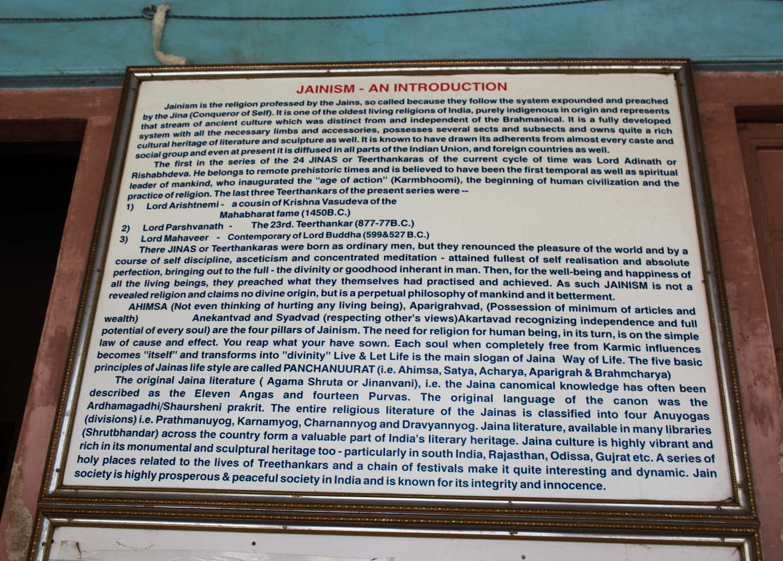 Besucht man einen Jain-Tempel, ist es vor dem Betreten zwingend erforderlich, seine Füße und sogar seinen Mund zu waschen – so sorgt man dafür, dass keine Bakterien eingeschleust werden. Weiters ist es verboten, Ledergegenstände oder eine Kamera mitzunehmen. Menschen, die den Jainismus praktizieren, folgen strikt dem Gesetz der „Ahimsa„, also der Gewaltlosigkeit; deshalb ist ihr Gang oder ihre Sitzart immer nach vorne gerichtet, um nicht aus Versehen Leben zu verletzen oder zu töten. Sie bedecken auch ihren Mund, um nicht versehentlich Keime oder kleine Insekten zu verschlucken.