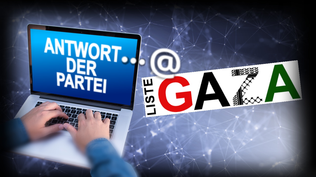 Die Antworten der Liste Gaza trafen am 16.9.24 um 7.07 bzw. 7.22 Uhr in der Redaktion ein.
