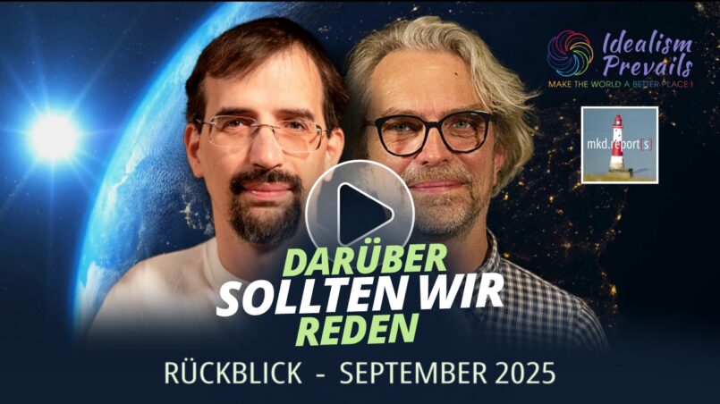 Im Monatsrückblick von Idealism Prevails & mkd.report[s] geht es u.a um die Treffen zum Ukraine-Krieg in Alaska und Washington, Trumps Nationalgardeeinsatz, Musks AI-Deal mit dem Pentagon & Telegram, Aufstände in Indonesien, den Generalstreik in Frankreich, den Umbruch im WEF, den Ballweg-Freispruch, Sport, KI und Existenzberechtigung.