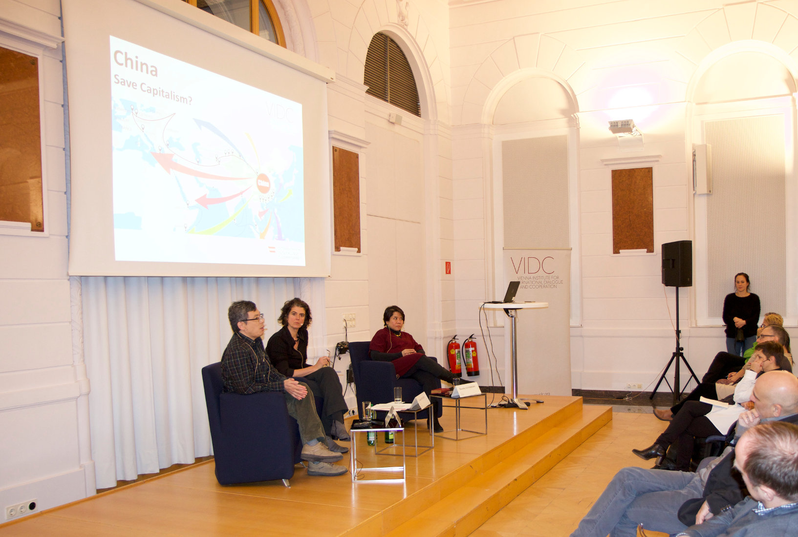 Aus diesem Grund fand im Reitersaal der Österreichischen Kontrollbank am 25. Jänner 2018 eine Podiumsdiskussion mit dem Titel „China – den Kapitalismus retten?“ statt. Als Redner waren Minqi Li, Professor am Institut für Wirtschaftswissenschaften an der Universität von Utah, und Dorothy Guerrero von der NGO „Global Justice Now“ mit Sitz in London eingeladen.