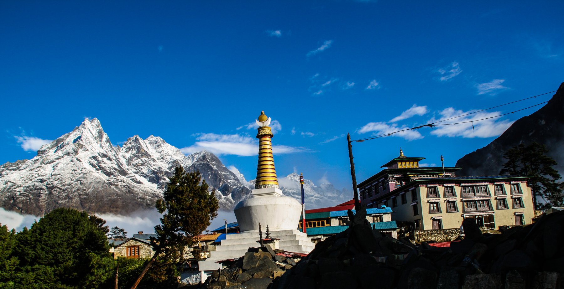 Sherpas sehen den Mount Everest übrigens nicht bloß als einen Berg, nein, für sie ist er etwas Heiliges und hat eine religiöse Bedeutung. Es ist, als würden sie den Schoß der „Heiligen Mutter der Welt“ betreten, was sich Chomolungma nennt (stammt aus dem Tibetanischen). Sie respektieren den Berg sehr und glauben daran, dass, falls es ihnen nicht gelingt, ihn zu besteigen, sie die Götter irgendwie wohl böse gestimmt hätten. Jedes Mal, bevor die einheimischen Führer und Träger den Everest besteigen, gehen sie ins Kloster von Tengboche (das befindet sich auf 3,870 m Höhe) beten. Sie bitten die Göttin um Vergebung, Schutz und um Glück und spenden dafür viele Blumen und Geld.