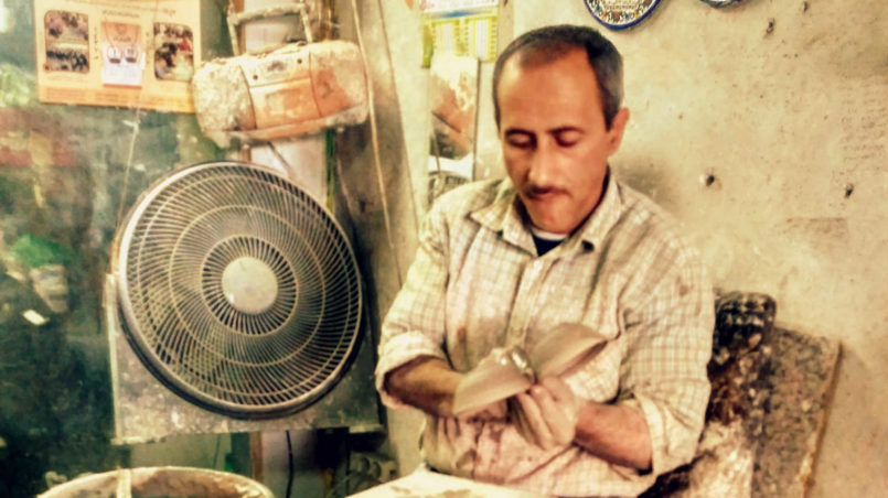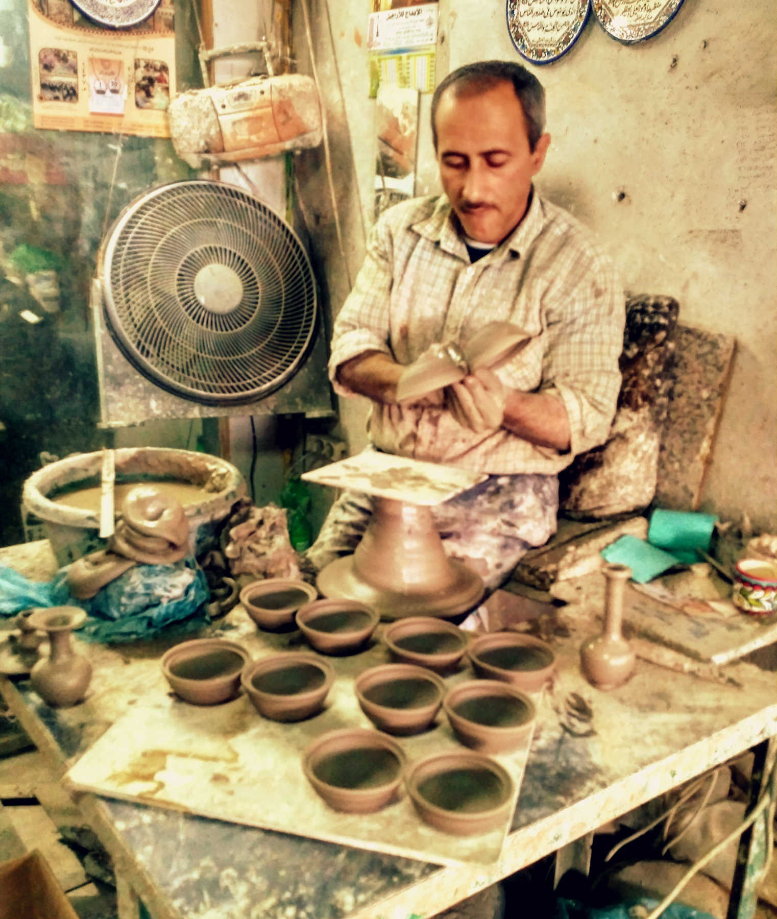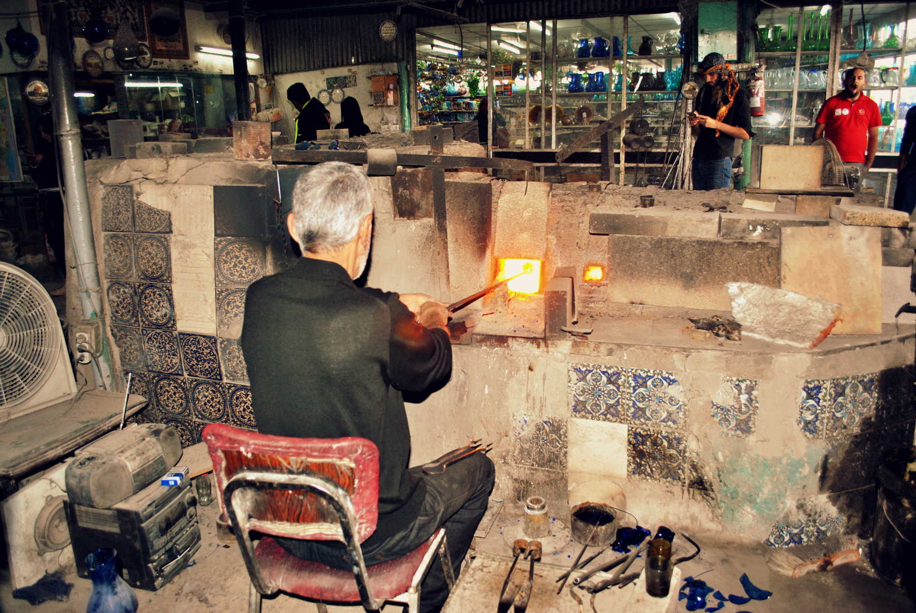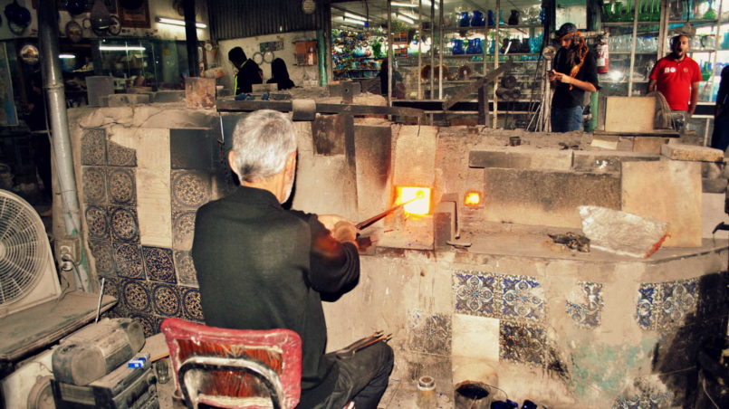 Auf unserem Weg in die Stadt besuchten wir zuerst eine Glasbläserei, eine der ältesten Glas- und Keramikmanufakturen. Hebron ist in der Region sehr bekannt für seinen Kalkstein, die Glasbläsereien und die Töpferwerkstätten.