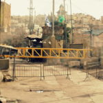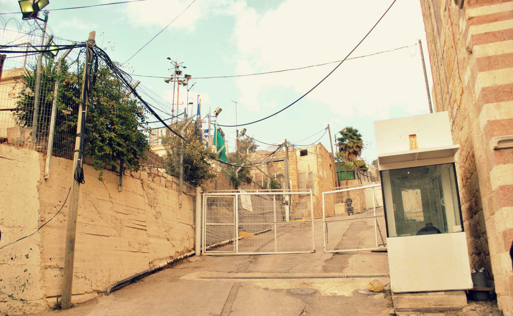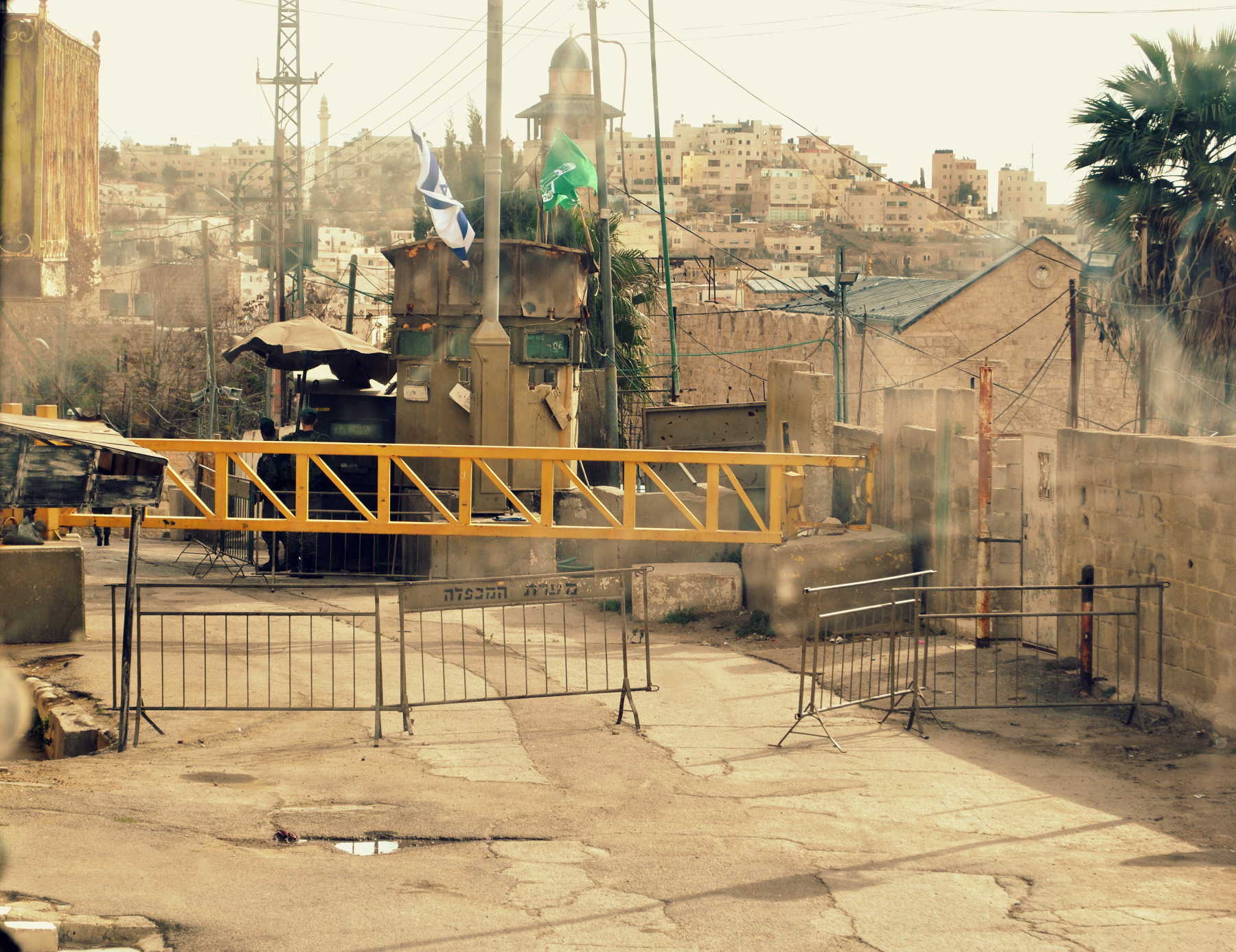 Der Platz, an dem unsere Busse hielten und an dem wir uns vor unserem Stadtrundgang versammelten, war direkt neben einer der Sperren, die die Sektoren H1 und H2 voneinander trennten. Wir sahen israelische Soldaten, die Wache standen.