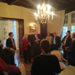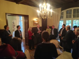 Der anschließende Spaziergang zur Botschaft Österreichs beim ER wirkt meiner aufkeimenden Müdigkeit entgegen. Der Empfang im edlen Haus des Botschafters Gerhard Jandl – neben dem delikaten Horsd’œuvre und Sekt – fördert so manch kurzweilige Geschichte über das Haus, die Stadt und die vermeintlich aus dem Elsass stammenden Habsburger zutage. Ebenso erfährt man, dass nicht alle Diplomaten den neuen Kurs in Wien gutheißen, z.B. die Schließungen der Botschaften in den Baltischen Staaten (Estland wurde von Außenministerin Kneissl verhindert) und die zeitgleiche Eröffnung einer Botschaft im umstrittenen Weißrussland.
