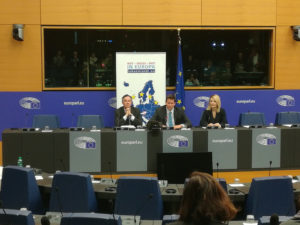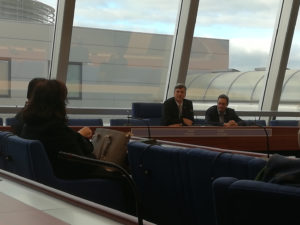 Nach einem ausgiebigen Morgen-Buffet folgt ein Workshop zum Thema „Zukunft des Westbalkan„, mit Lukas Mandl, David McAllister und Dhurata Hoxha. Der Einrichtungsstil im 70er-Jahre-Flair erinnert an die Wiener Uno-City. Der Saal besteht zur Hälfte aus Gästen wie uns; auffällig ist aber, auf wie viele Schulklassen und sonstige Interessierte man in den langen Gängen des nicht zum Interior passenden, relativ schmucken Gebäudes des EP trifft.