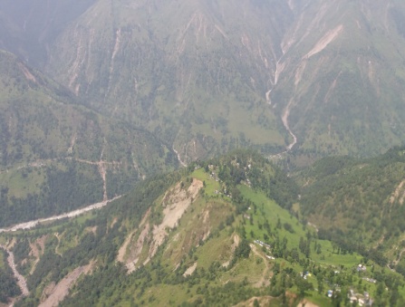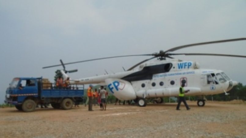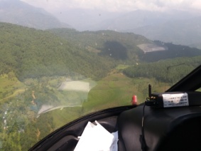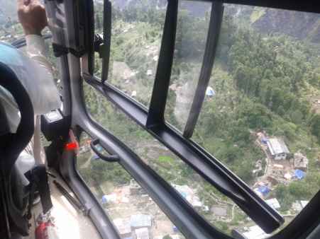 The workers started to load the relief materials into the helicopters. One was smaller (Nepali Fishtail helicopter) and the other was bigger (WFP helicopter). Within 15-20 minutes everything was loaded and I had to board the smaller helicopter. I was feeling terribly nervous as I fastened my seat belt and put on the headphones and finally the helicopter took off.