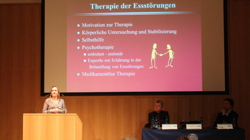 She started her lecture by pointing out that also these disorders, in most cases, begin with a diet or over-rigid eating behaviour, although with both disorders an excessive food intake is in the foreground.
