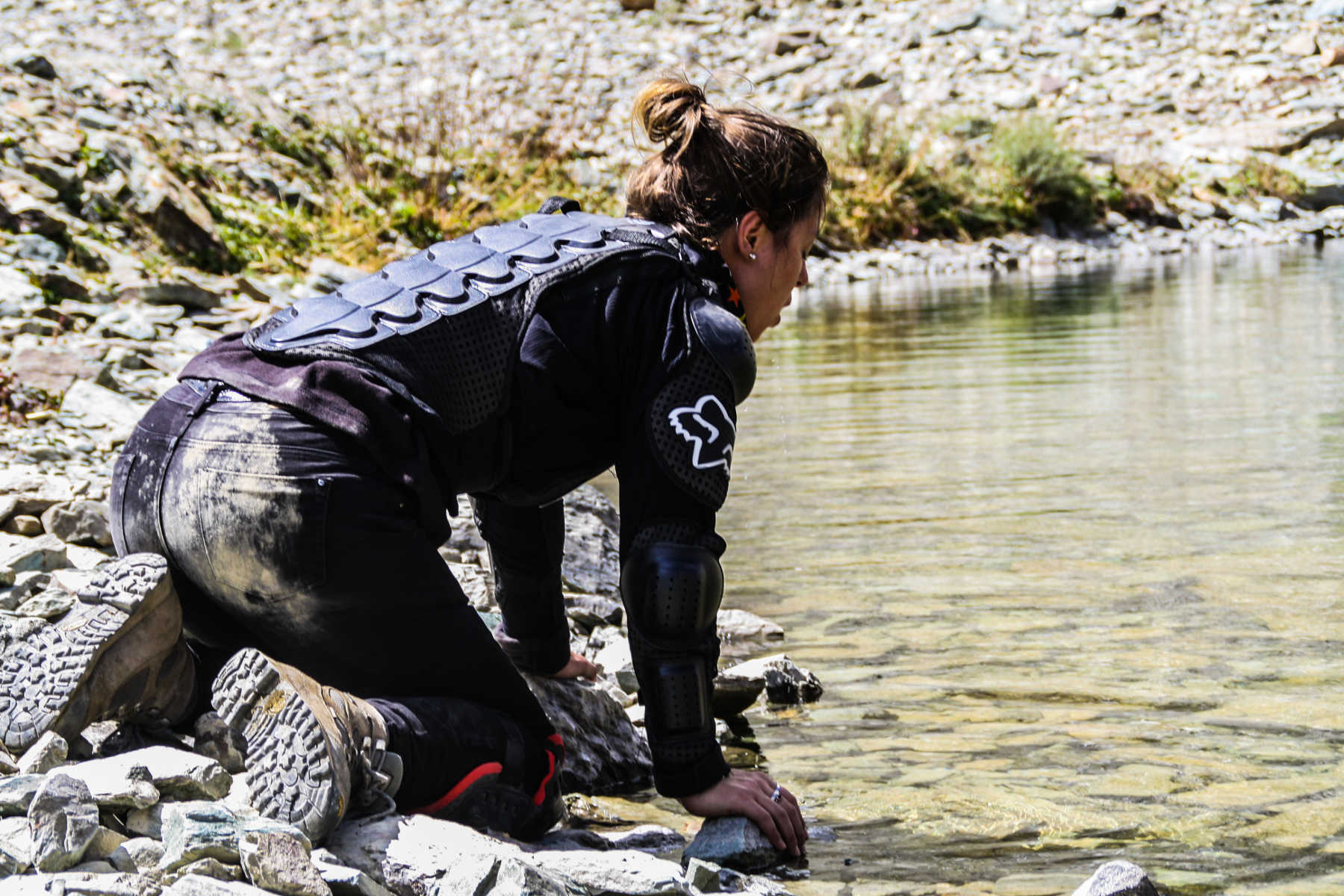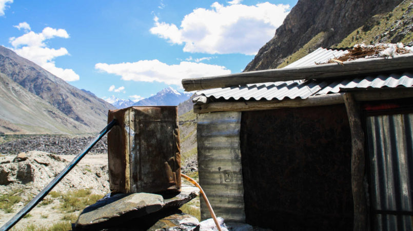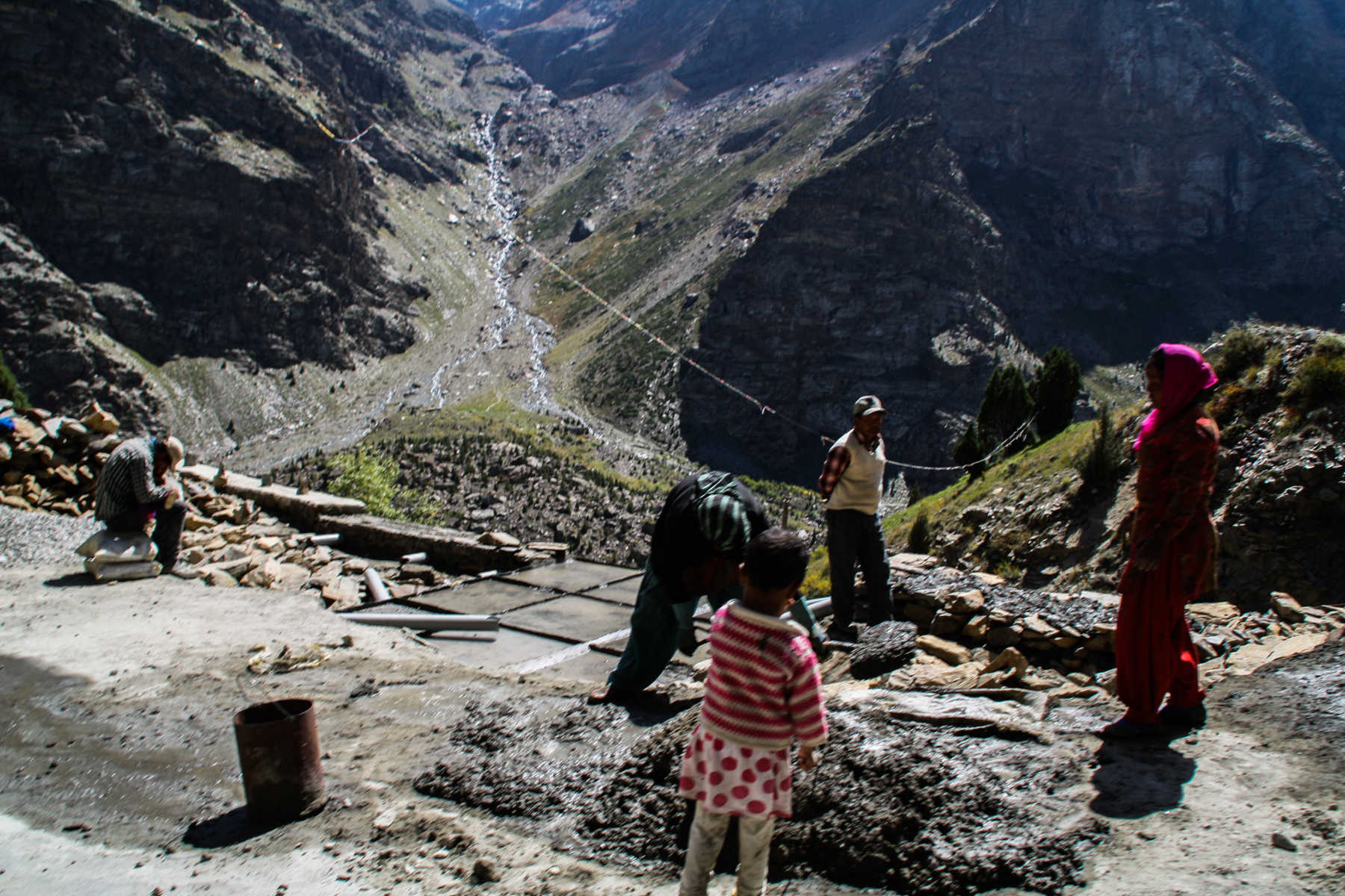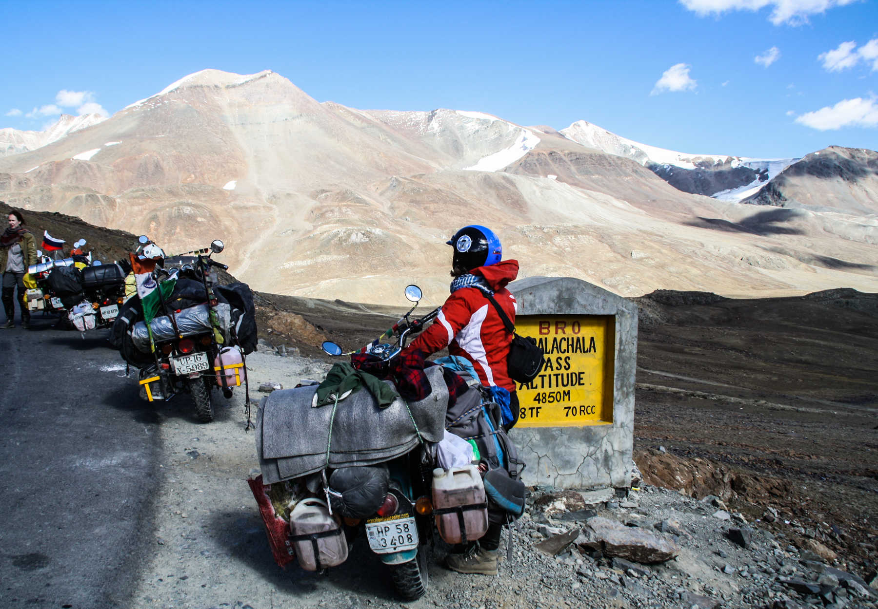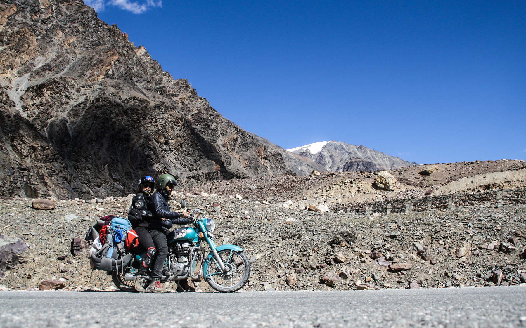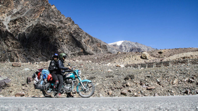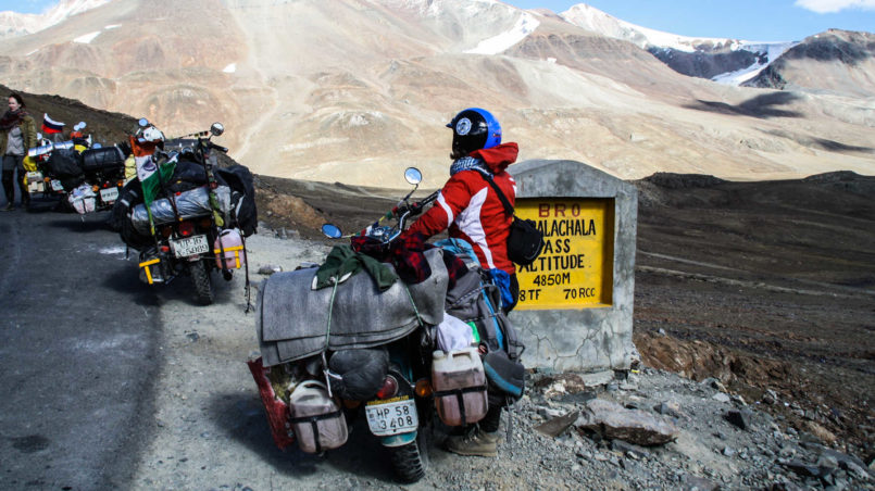 I hop off the bike, since it is easier for one person to control it. Sourabh passes the water stream slowly but his shoes are now totally wet. Thankfully I managed to keep mine partially dry, as getting wet feet and facing this incredibly high altitude isn’t the nicest thing in the world to experience!