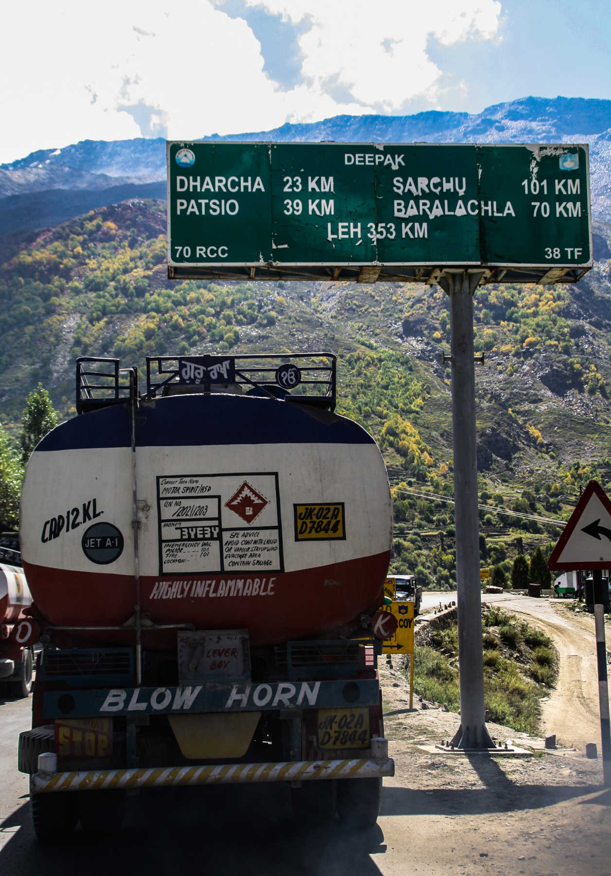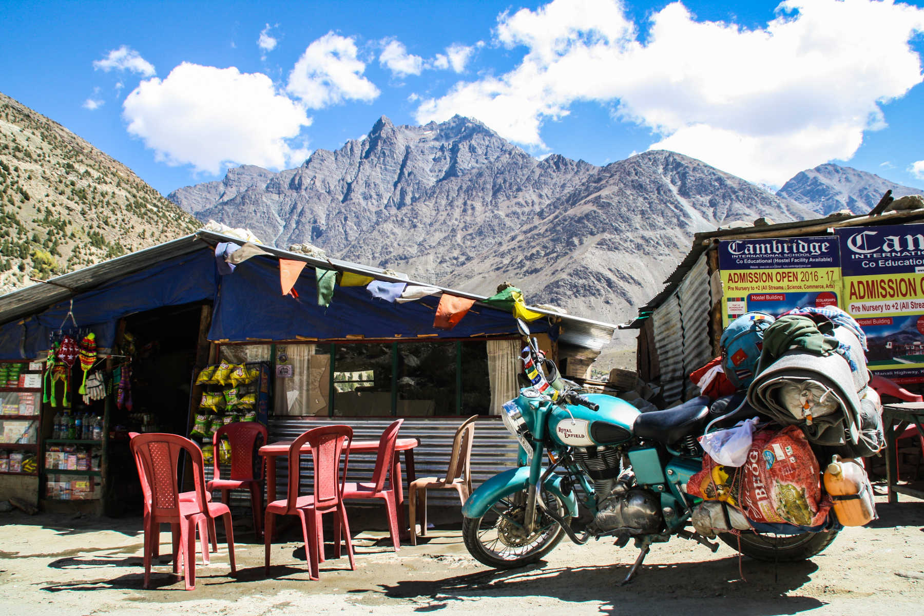 But there is no time to reflect on it since we have to go to the petrol station, as this is the last one before Leh, which is now still 353 km away. We decide to fill up our tank and two full canisters (approx. 16l). Soon after we arrive in Keylong, which is the last “big town” (1,150 inhabitants) until Leh so we take the chance to have a bike check and buy some supplies.