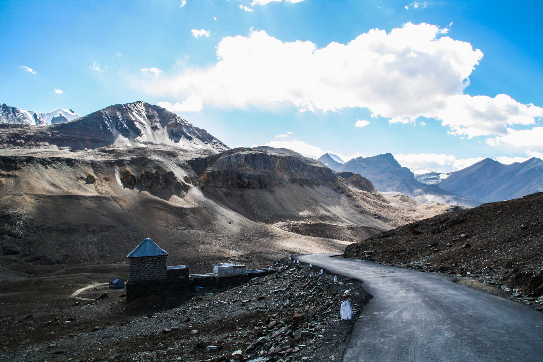 About two hours past Keylong we reach a settlement called Darcha (3,360m), which is the last checkpoint before driving towards Bara-lacha la, our 2nd pass of this trip, at 4,850m. We show our passports, use the “open-air” toilet, have lunch and are ready to start the climb.
