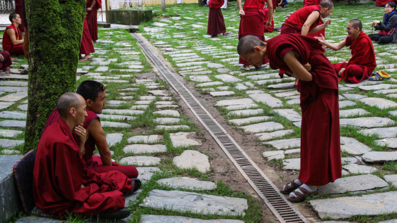 Buddhist debate, Dalai Lama temple, McLeodganj, Himachal Pradesh, India