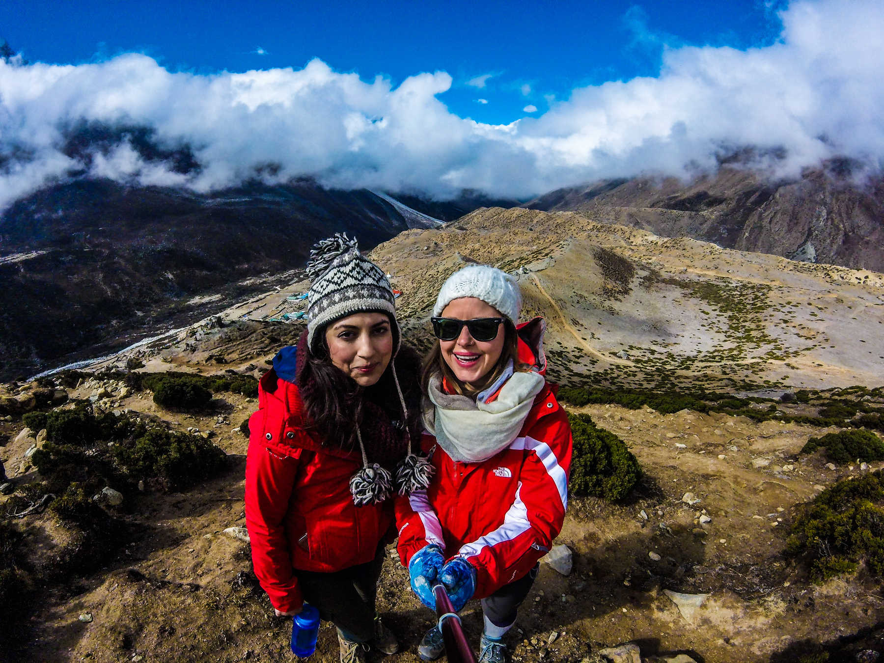 We tie up our laces and start off on the same trek that we already did the day before to acclimatise ourselves, but this time we have a splendid view over the village and the valley.