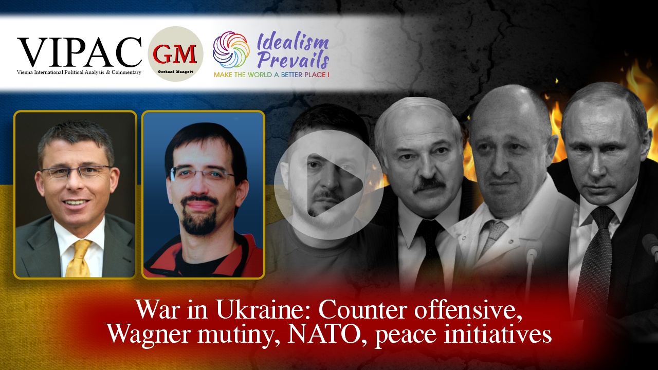Ukraine´s counter offensive, the recent mutiny of the Wagner group headed by Yevgeny Prigozhin, NATO´s current activities regarding the war in Ukraine and the chances of success of several peace initiatives.