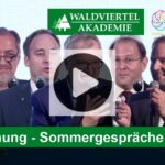 Wie jedes Jahr erfolgte die Eröffnung der Sommergespräche der Waldviertel Akademie auf Schloß Weitra. Auf die einleitenden Worte des Bürgermeisters von Weitra, Patrick Layr, folgen zwei Grußbotschaften, von Bundespräsident Alexander Van der Bellen und von Frau Mag.a Christiane Teschl-Hofmeister (in Vertretung der niederösterreichischen Landeshauptfrau Johanna Mickl-Leitner). Danach übernimmt Dr. Ernst Wurz, der Vorsitzende der Waldviertel Akademie, das Wort, gefolgt von Simone Brodesser, der neuen Geschäftsführerin der Waldviertel Akademie, die den Abend moderiert.