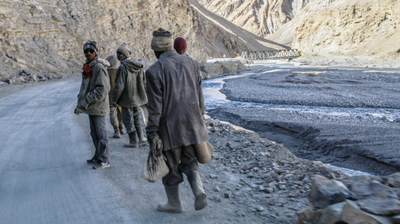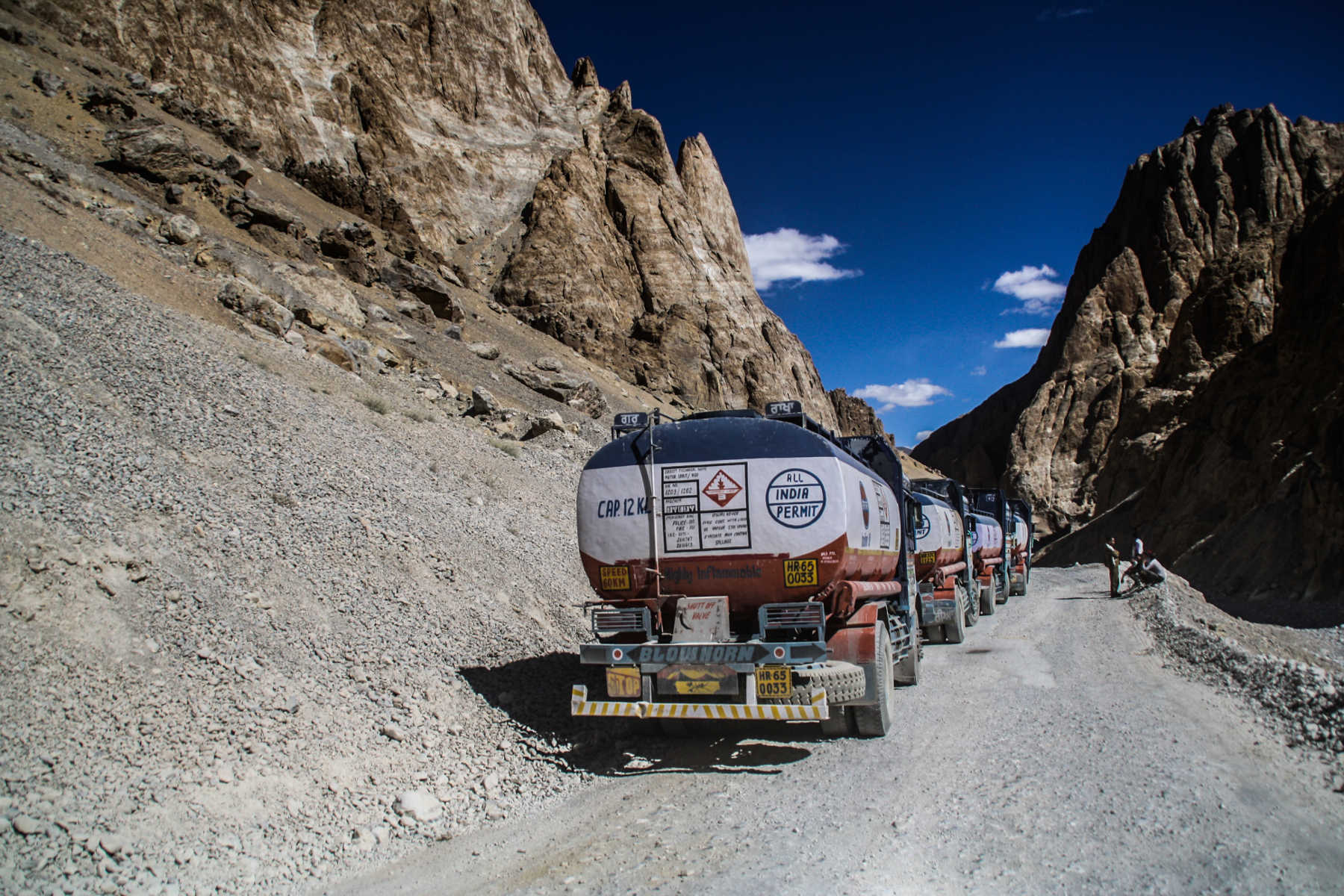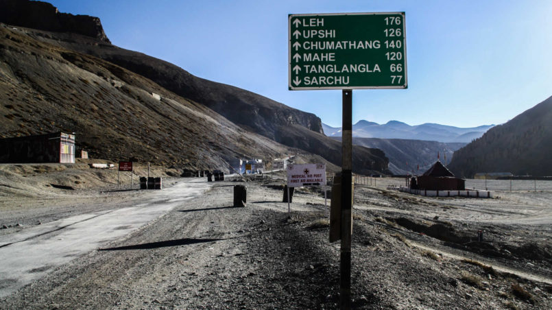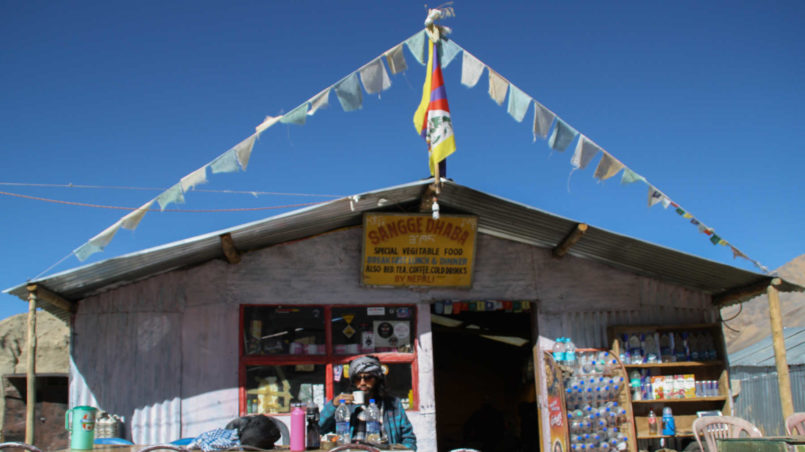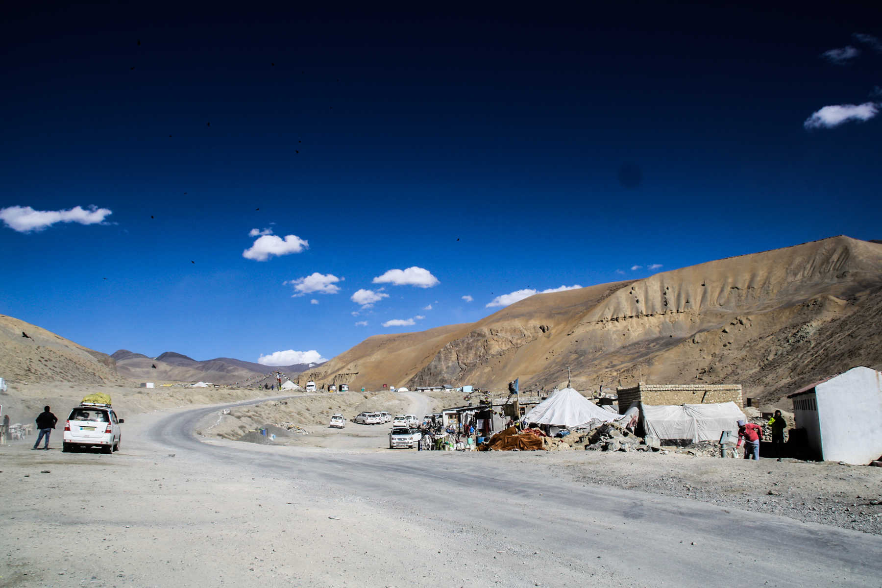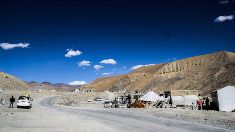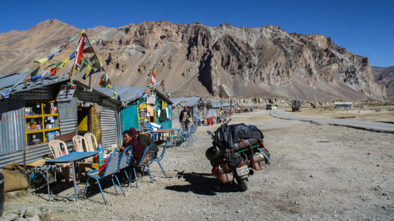 Zuerst begebe ich mich auf die Suche nach einem „Waschraum“, der sich in der Nähe des Dhaba befindet. Danach trinke ich genüsslich einen heißen Chai mit einem Omelett-Brot. Da es zwischen Sarchu und Leh nur einen einzigen Zwischenstopp gibt, nämlich Pang auf 4.700 m Höhe, und es aufgrund der Höhenlage nicht empfehlenswert ist, dort auch zu übernachten, haben wir geplant, Leh heute zu erreichen – und Leh ist stolze 250 km von hier entfernt.