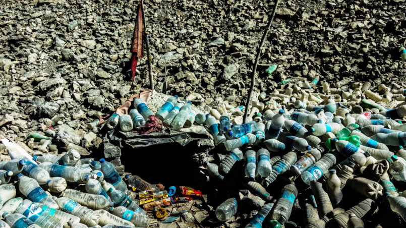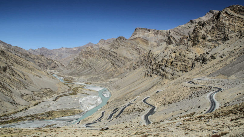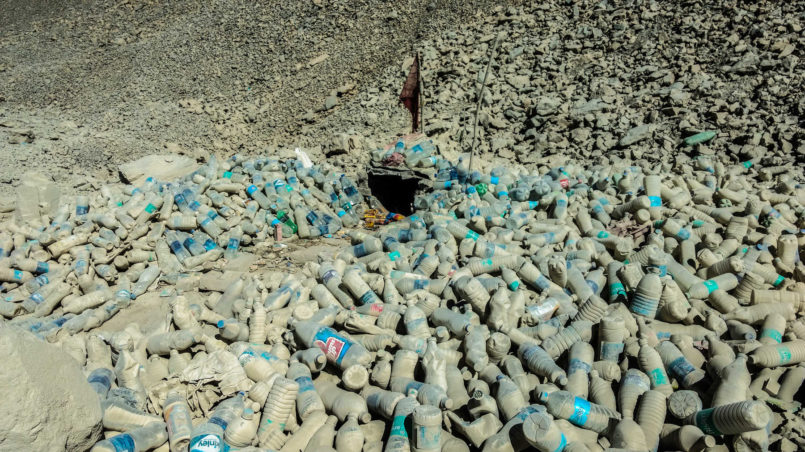 Als wir losfahren, ist die Straße recht gut, mit nur wenig Verkehr, sie schlängelt sich auf der einen Seite an den Bergen vorbei, und auf der anderen Seite entlang des Flussufers. Dann sind wir bei den legendären „Gata Loops“ angelangt, die aus 21 Serpentinen auf einer Höhe von 4.190 m bestehen und einen herrlichen Panoramablick über das gesamte Tal bieten. Vor dem Aufstieg halten wir an, machen eine kleine Pause und setzen gleich wieder unsere Fahrt fort. Während der Fahrt erblicken wir links von uns einen Haufen voller Wasserflaschen und gleich daneben einen kleinen Tempel. Wir halten an, um ein Foto zu machen, und fragen uns, was das genau ist. Seltsam ist unser Gefühl, das uns dann bei der Weiterfahrt überkommt.