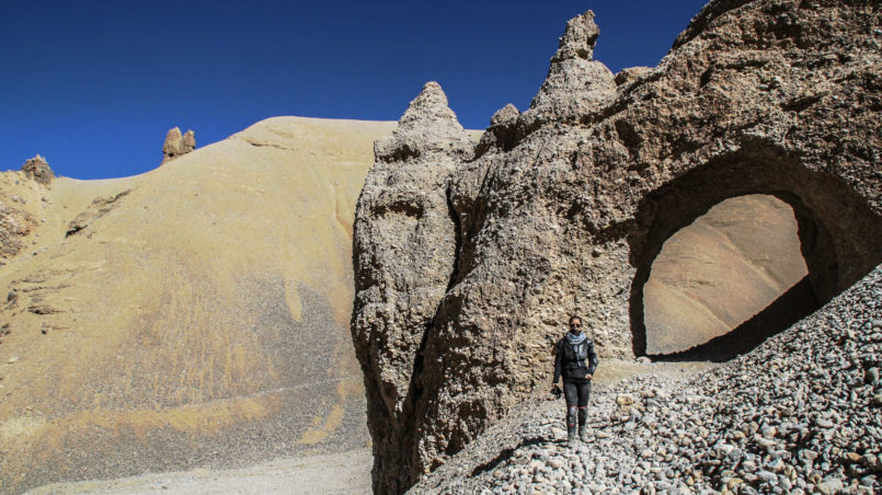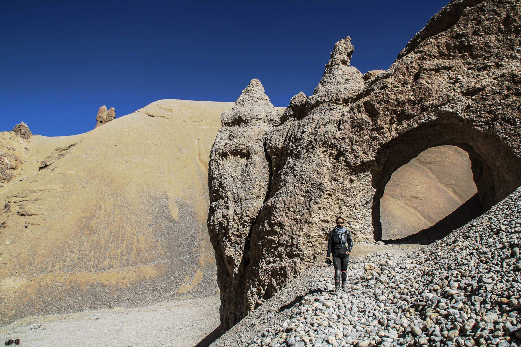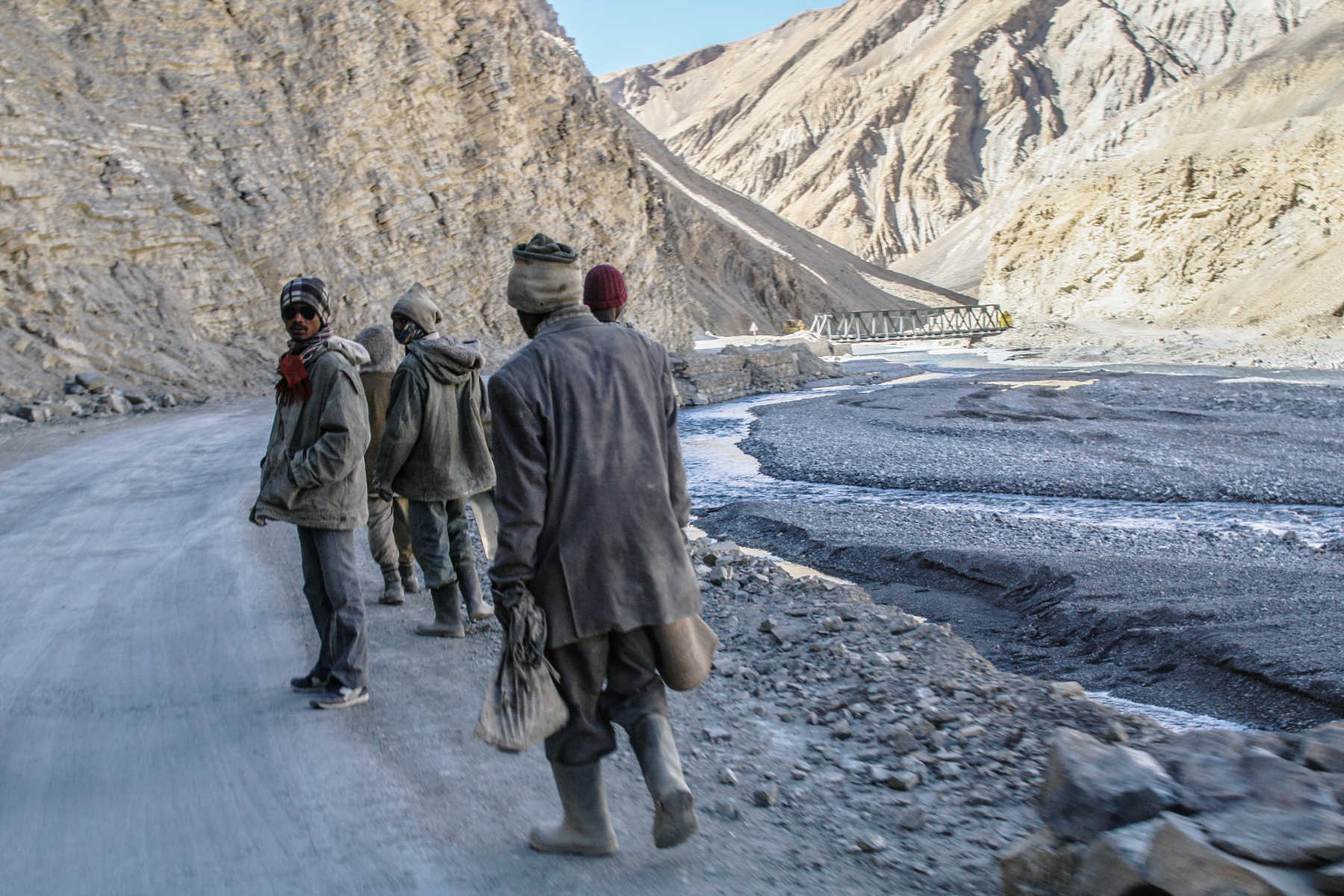 Das Ganze hätte sehr schlimm ausgehen können – doch wir hatten Glück! Wir setzen unseren Weg fort, sprechen nicht viel, zittern wie Espenlaub und sind nun besonders vorsichtig. Nach Lachlung kommen wir in ein anderes Tal, das trockener ist und eintönig wirkt – große Berge aus feinstem Pulverschnee um uns, die uns ein Gefühl der Einsamkeit vermitteln, aber auch das Gefühl, Teil von DEM GROSSEN GANZEN zu sein. Auch wenn nirgendwo Bäume sind, so sind es die Berge, die mit uns sprechen.