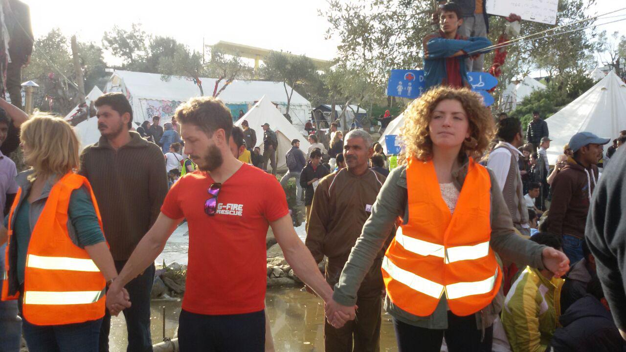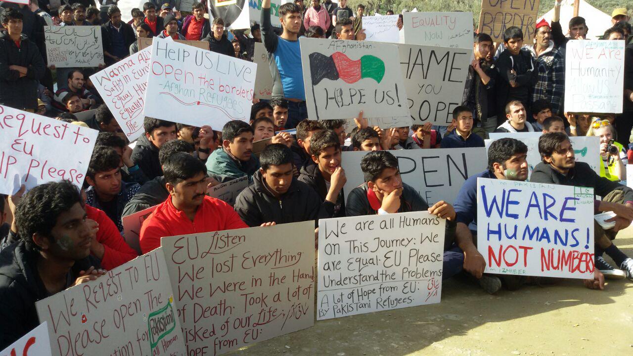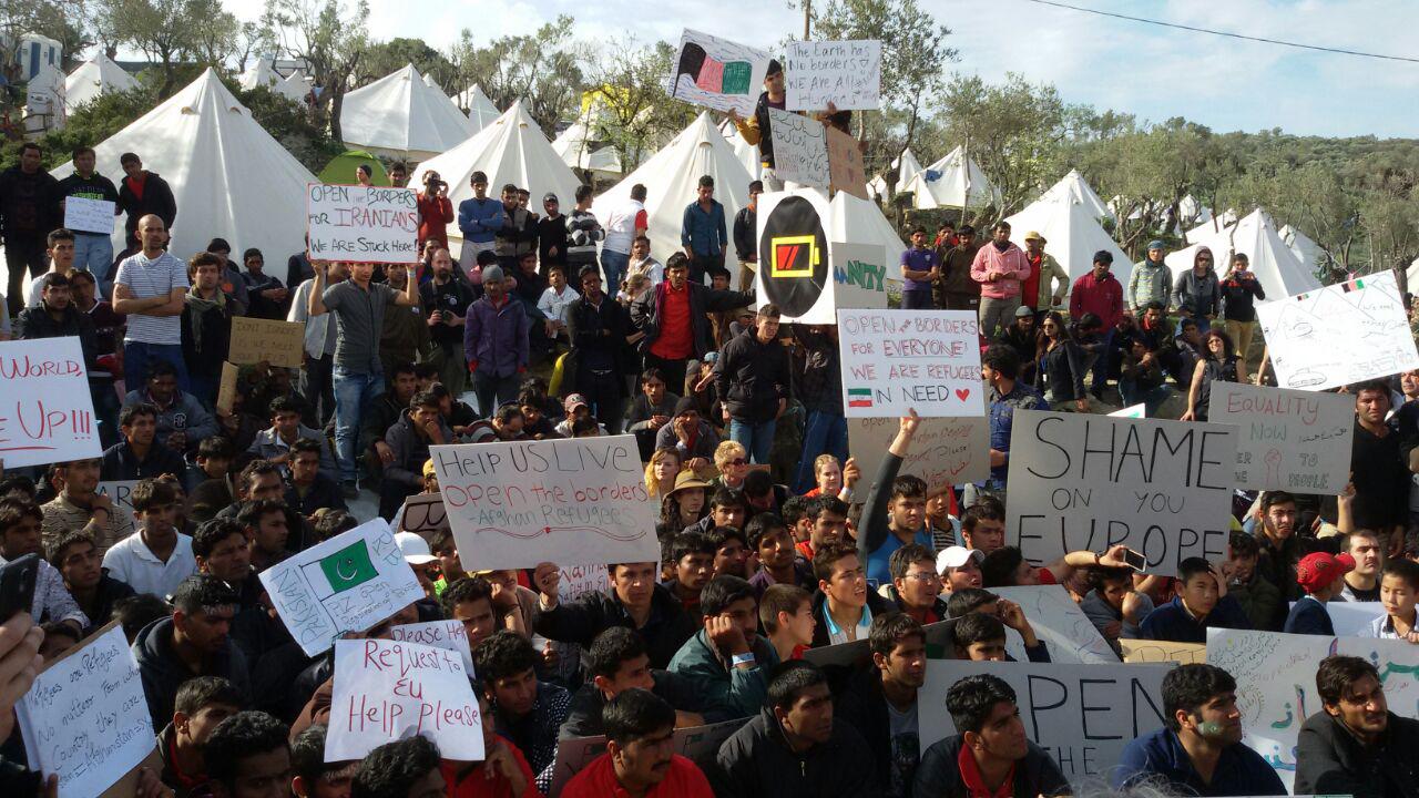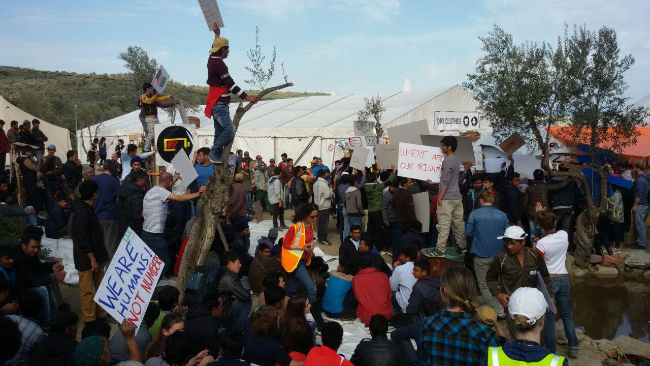 Später wurde uns mitgeteilt, dass es heute um 17:00 Uhr einen friedlichen Protest gegen die Schließung der Grenzen geben werde. Um 17:00 Uhr gingen wir raus, um an der Protestaktion teilzunehmen und so unsere Solidarität zu zeigen.