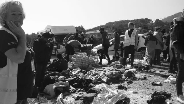 Weiterhin wurde der Bus von UNHCR (United Nations High Commission for Refugees) darüber verständigt, dass ein Boot angekommen ist und die Menschen bereit sind, abgeholt zu werden. Dieser Service der UNHCR steht erst seit neuestem zur Verfügung- vorher mussten die Menschen ihren Weg selbst zum Registrierungszentrum “Moria”, das früher ein Gefägnis war, finden. Sie mussten zu Fuß und mit durchnässten Kleidern in das Registrierungscamp laufen. Je nachdem an welchem Punkt der Insel sie angekommen waren, konnte der Weg auch bis zu zwei Tage dauern.