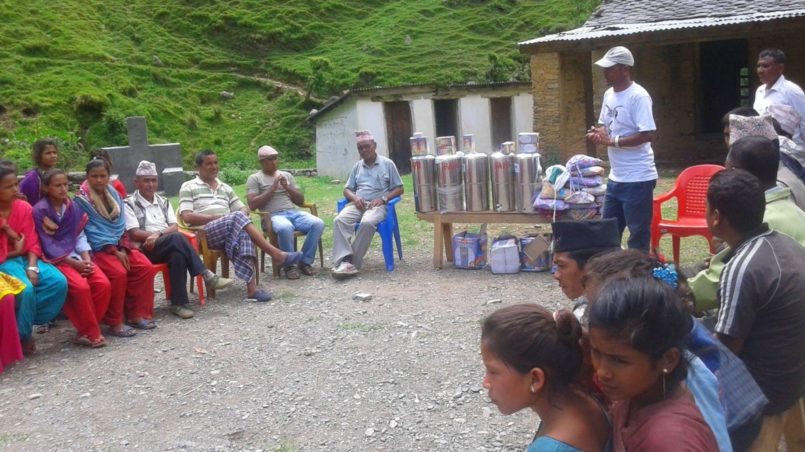 Am Interaktionsprogramm nahmen verschiedenste Personen teil, so etwa der Bezirksvorsteher, Repräsentanten politischer Parteien, die Vorsitzende einer Müttergruppe sowie freiwillige Gesundheitsbotschafterinnen, die Female Community Health Volunteers (F.C.H.V’s). Mein Onkel teilte mir mit, dass die Mädchen sehr glücklich gewesen seien, die Sets in Empfang nehmen zu können, und die Lehrer hatten gesagt, es sei das erste Mal, dass ihre Schule Wasserfilter erhalten habe.