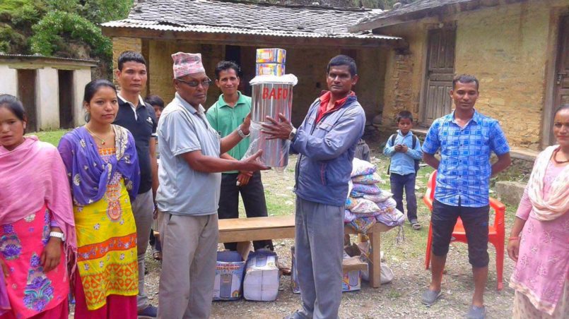 Zuerst musste ich nach drei zuverlässigen Trägern suchen, die die Pakete transportieren sollten. Ich traf mich mit einigen Trägern, aber sie waren nicht darauf vorbereitet, eine so große Entfernung zurückzulegen. Es war nicht leicht, sie davon zu überzeugen, sich auf eine zweitägige Reise zu begeben, aber schließlich erklärten sie sich einverstanden. Doch sie verlangten mehr Geld: Für jeden Träger 2.000 Nepalesische Rupien pro Tag, das sind etwas mehr als 16 Euro. Ich sagte ihnen, dass das zu viel sei, und schließlich einigten wir uns auf 1.500 Rupien pro Tag, rund 12 Euro. Sie brauchten zwei Tage, um die Pakete in den Bezirk Sakla der Gemeinde Bareakot zu bringen. Nach ihrer Ankunft lieferten sie sie bei meinem Onkel Gobinda Singh ab, der sie sicher verwahrte.