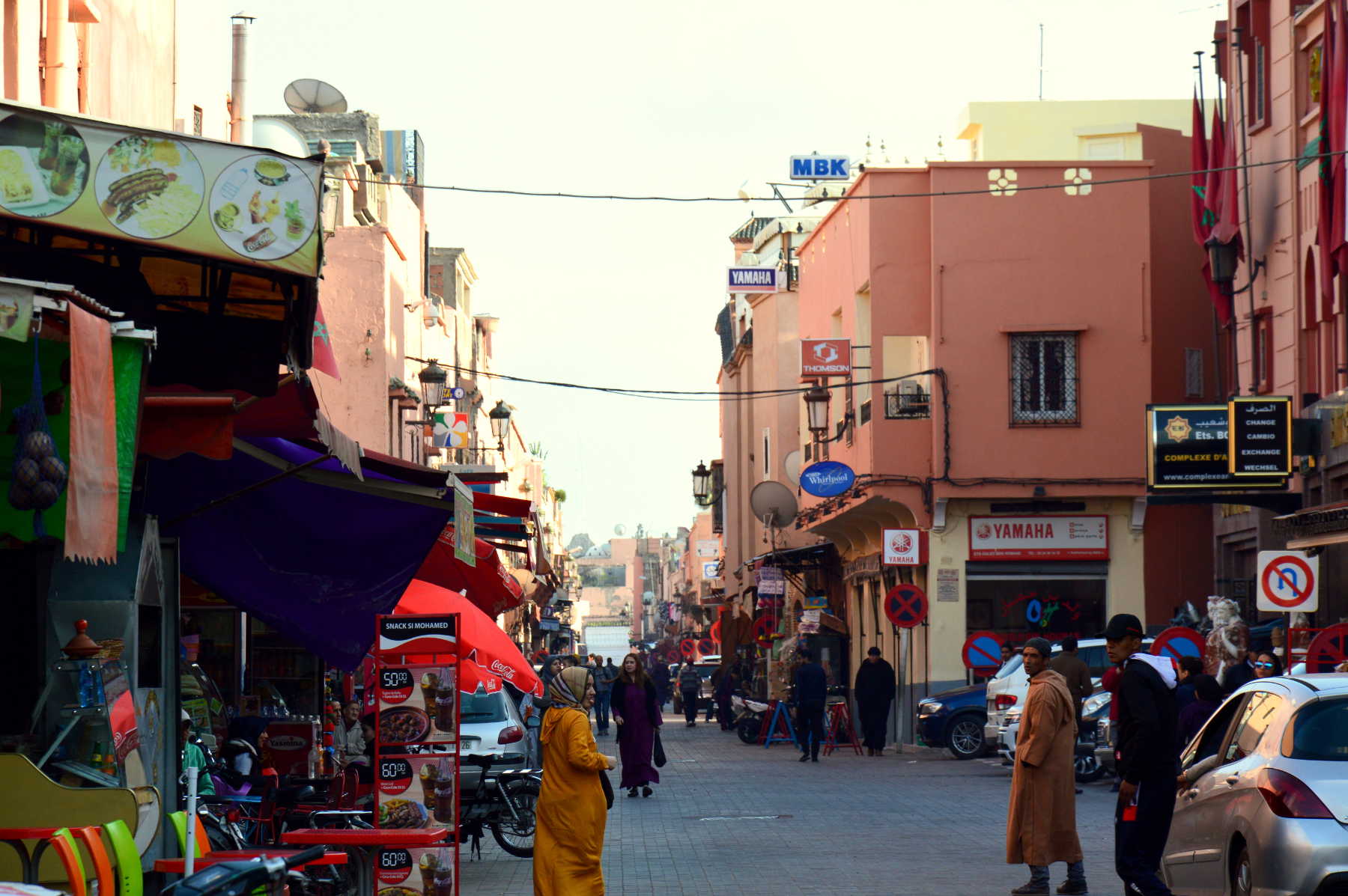 Nachdem ich mir dies gesagt hatte, beruhigte ich mich ein wenig. Nach ungefähr einer halben Stunde kam der Rezeptionist und fragte mich nach dem Geld für die Unterkunft. Sein Chef war da und wollte eine Erklärung, warum ich noch nicht gezahlt hätte. Jetzt gab es keine Ausreden mehr, ich musste rausgehen. Ich hatte noch immer Angst, aber nicht mehr so viel wie am Morgen. Glücklicherweise waren da ein paar Jungs, die zum Essen rausgingen. Ich schloss mich ihnen an und fragte sie nach ihren Erfahrungen in Marokko.