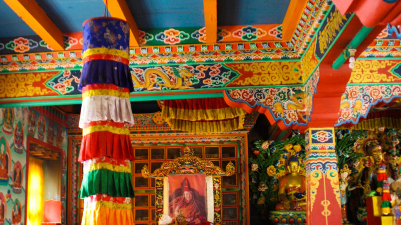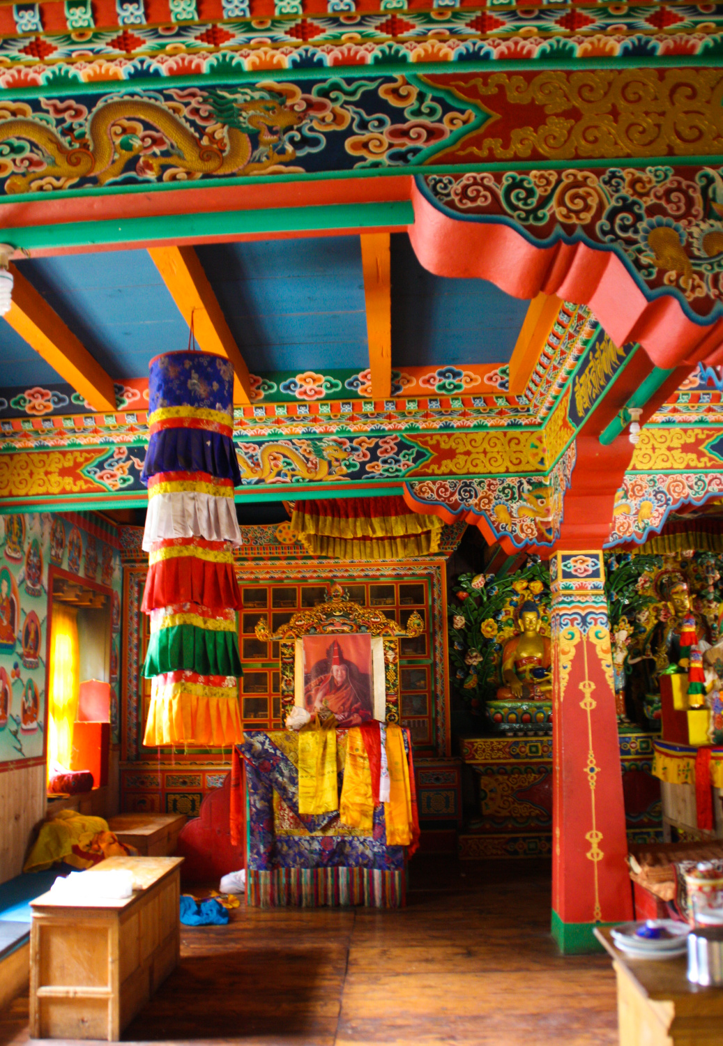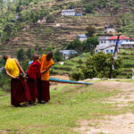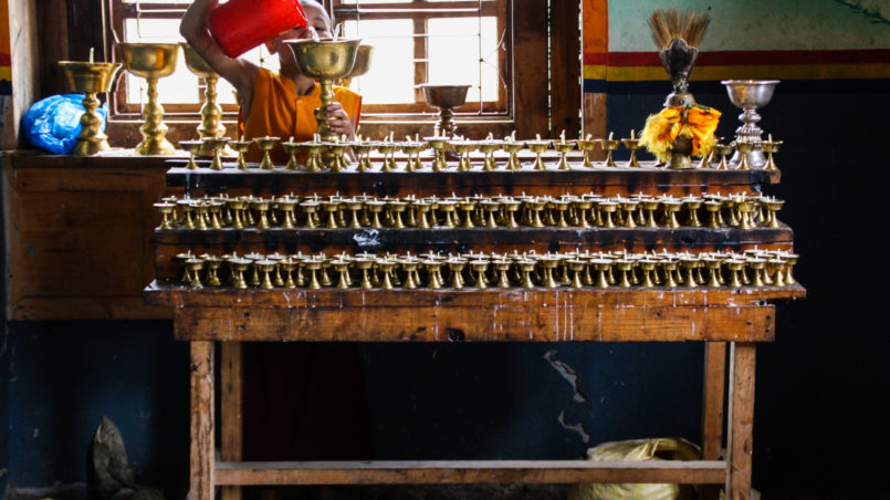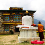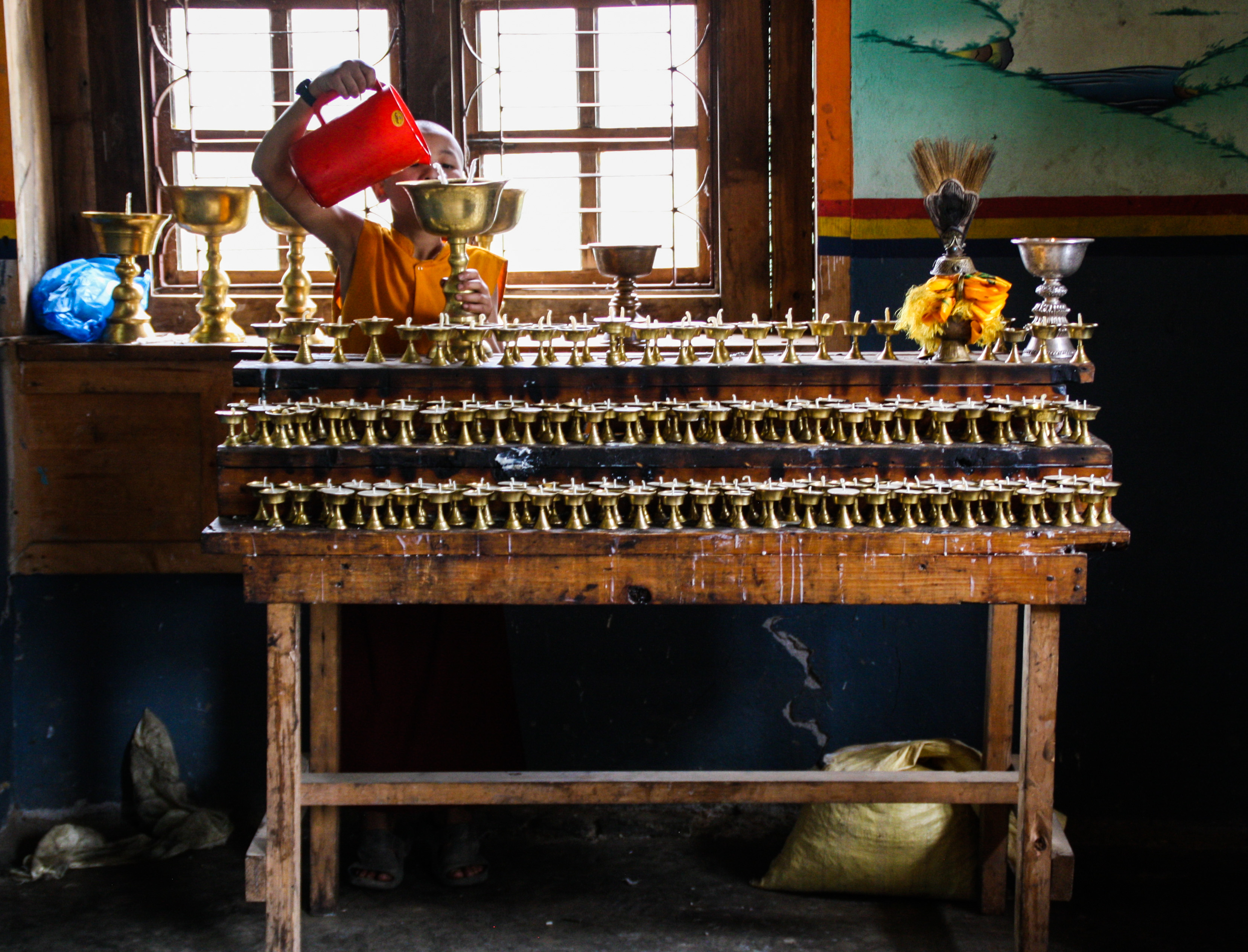 Es ist ein sehr heißer Tag, und als ich den Gipfel des Hügels erreiche, sehe ich, wie mir ein paar Kinder vom Kloster in ihren roten und gelben Trachten entgegen kommen. Während sie sich auf den Weg ins Tal machen, setze ich den Pfad nach oben fort entlang eines engen und steilen Berghanges und weiß ehrlich gesagt noch nicht, wohin mich dieser führt. Als ich den höchsten Punkt erreiche, stehe ich vor dem schönsten Kloster ever: Es ist sehr bunt und wirkt belebt durch die Mönche, die alle Generationen zu repräsentieren scheinen: Kinder, Jugendliche, Erwachsene und Alte; und jeder Einzelne ist vertieft in sein Tun. Aus der Ferne höre ich eine Stimme, die sagt: „Willkommen in unserem Kloster – bitte treten Sie ein.“ Ich bewege mich gen Eingangstor, ziehe mir die Schuhe aus (was Usus ist, bevor man ein Kloster betritt), und lasse mich von einem jungen Mönch führen. Ich kann meinen Augen nicht trauen und bin sprachlos – es ist da etwas, das ich nicht in Worte fassen kann, etwas ganz Spezielles, etwas, das ich noch nie zuvor fühlte. Ich spüre die positive Energie durch meinen gesamten Körper fließen, bestehend aus reinstem GLÜCK.