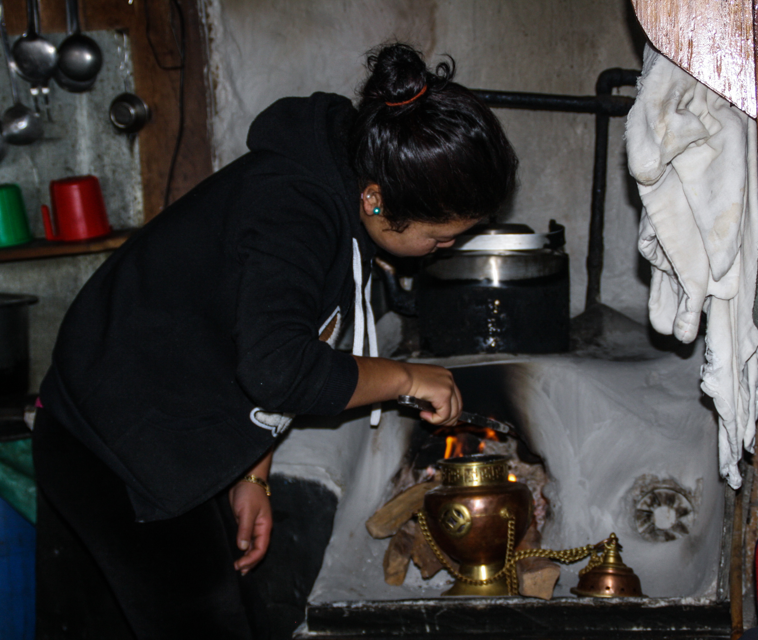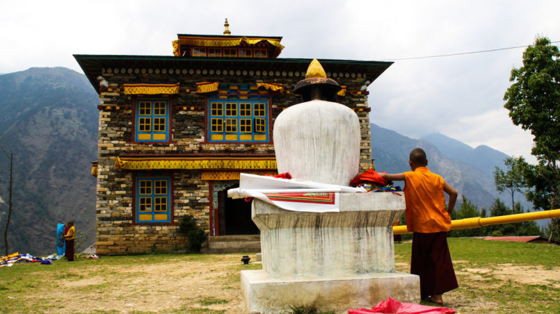 Während des Tages versuche ich, so viel wie möglich zu ruhen – und in dieser Zeit reinigt sich mein Körper von den Giftstoffen. Das ist wirklich die schlimmste Nahrungsmittelvergiftung, die ich jemals hatte. Am Abend geht es mir etwas besser und mein Körper nimmt ein wenig Nahrung auf. Und in der Nacht – ich kann mich nicht mehr an die Uhrzeit erinnern, denn wenn man den ganzen Tag in so einem Zustand herumliegt, verliert man alle Wahrnehmung um sich herum – höre ich laute Musik von draußen. Ich bin mir nicht sicher, ob ich nur träume oder ob das real ist, aber es hört sich lustig an! Am nächsten Morgen frage ich Pasang, unseren Guide, und er erzählt mir, dass es ein großes Fest im Kloster gab und dass das gesamte Dorf kam. Schade, dass es mir so schlecht ging an diesem Tag …