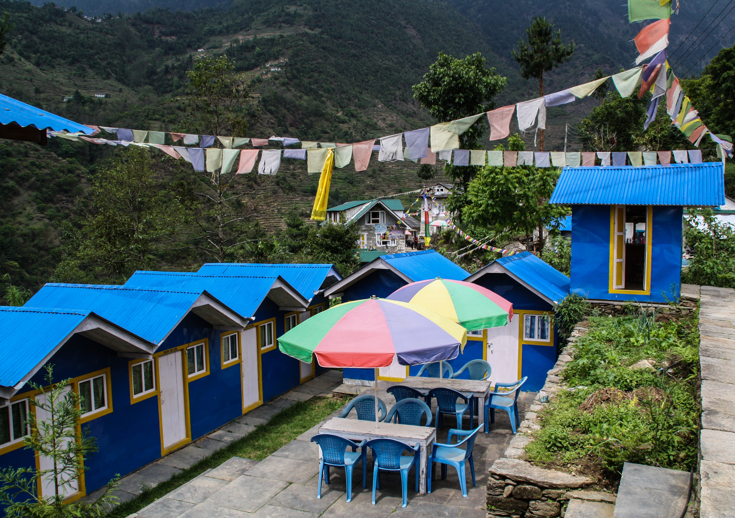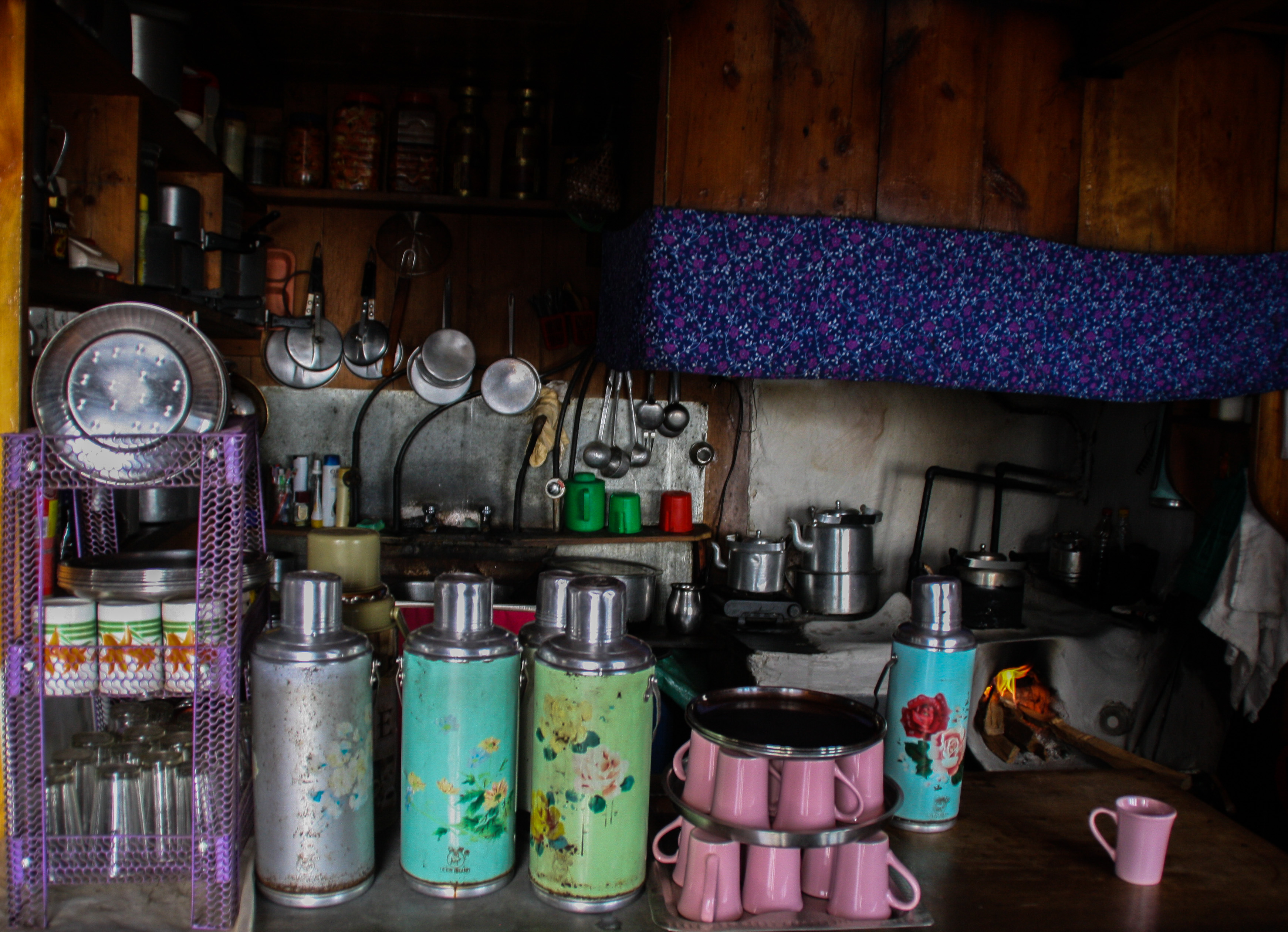 Sobald wir die Tür zum Gästehaus öffnen, sehen wir einen Raum voller Menschen – damit hatten wir nicht gerechnent, zumal wir die vorangegangenen Nächte ganz alleine die Wanderung bestritten, und auch im Gästehaus begegneten wir nur Indern, einem Briten und einer Familie aus Frankreich.