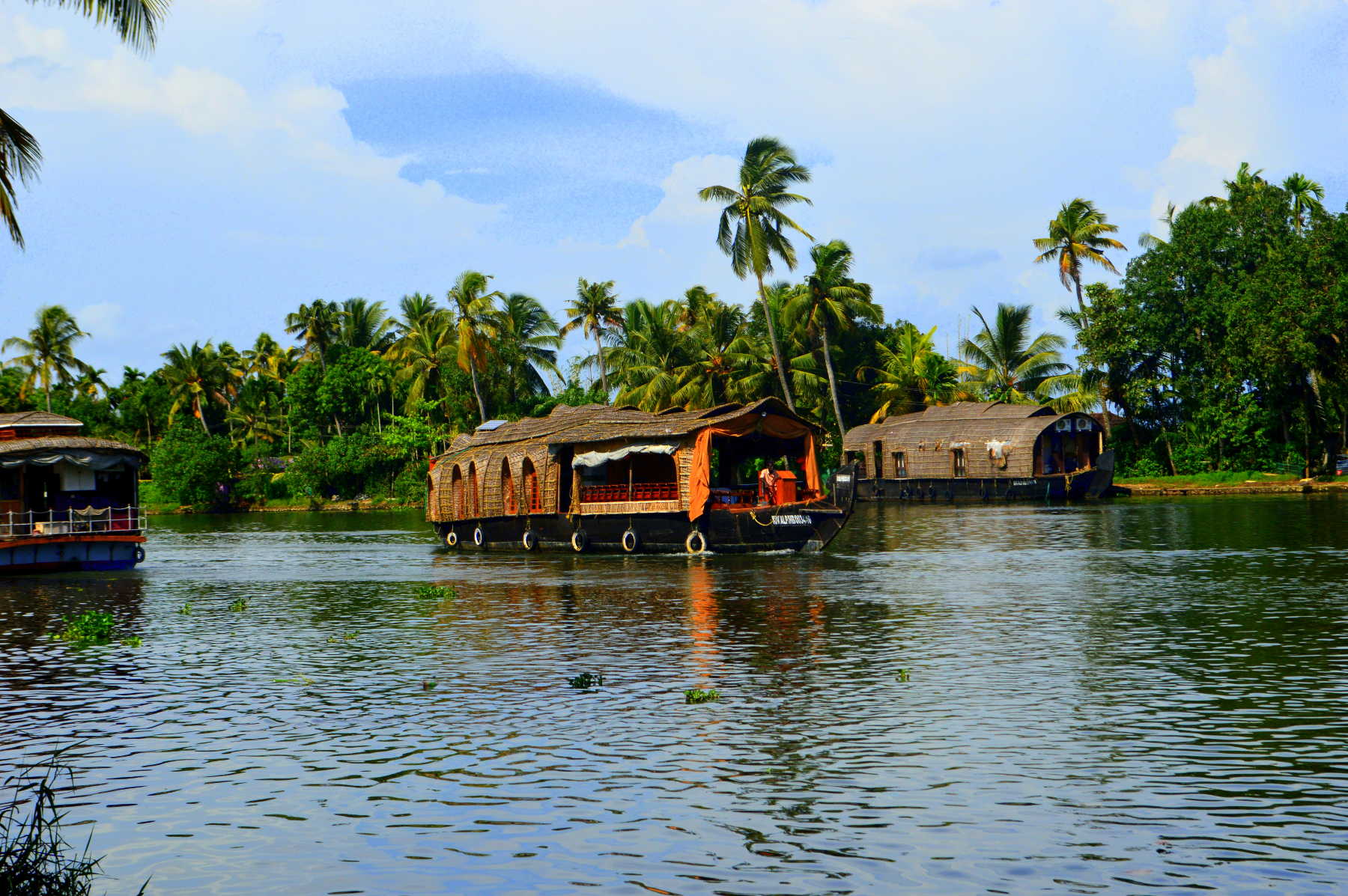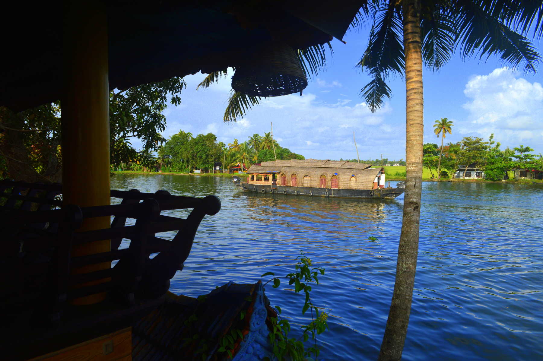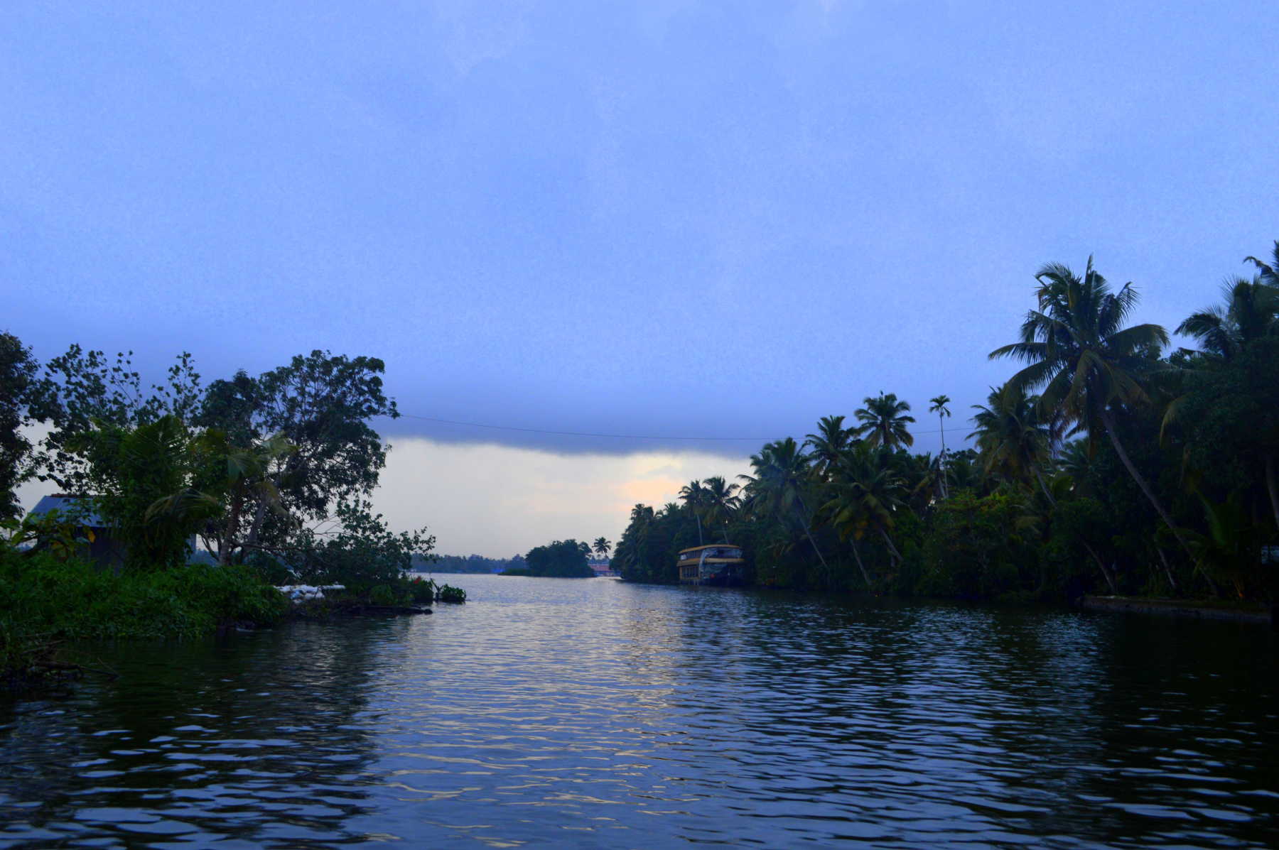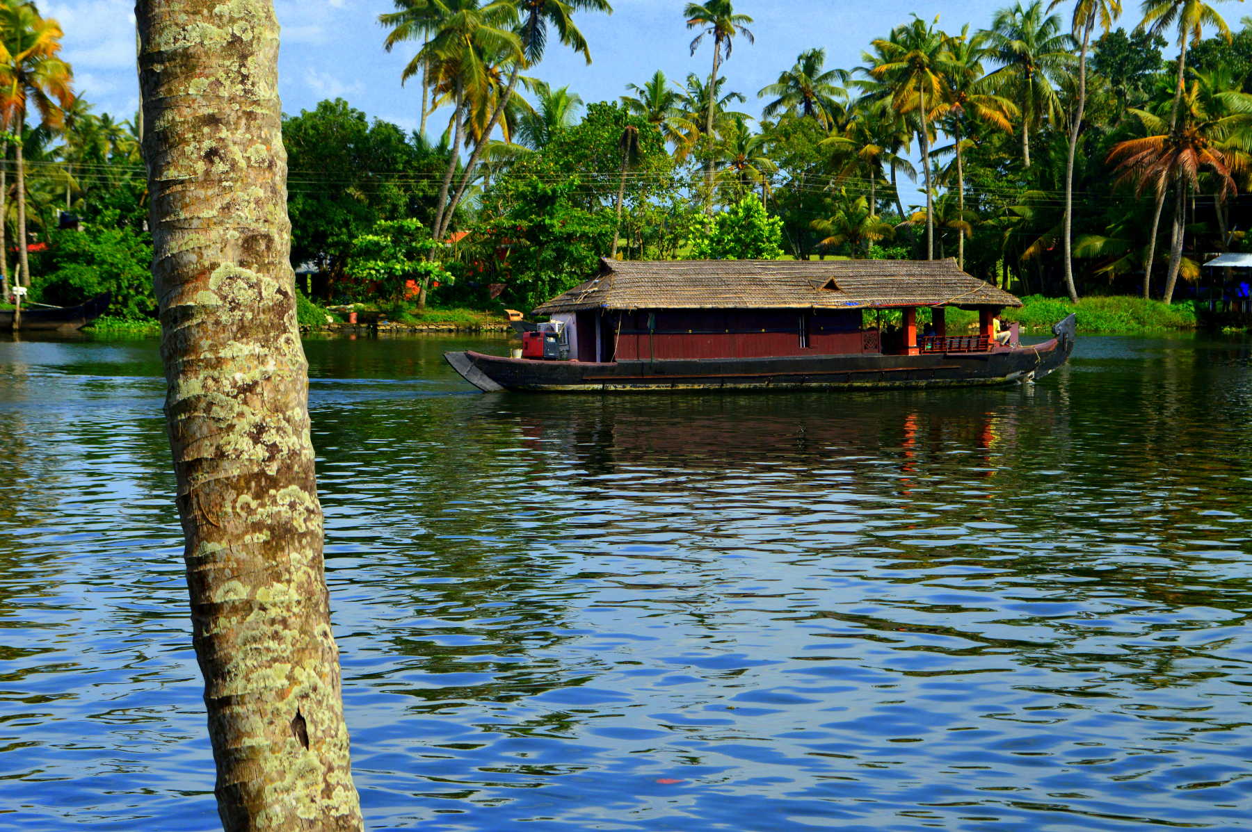 Als wir Alleppey erreichten, war es bereits acht Uhr abends und völlig dunkel. Wir checkten in unserem Hotel ein und planten, am nächsten Morgen früh aufzustehen, um eine Rundfahrt mit einem Kettuvallam, einem der typischen Hausboote, zu unternehmen. Diese Hausboote werden aus dem Holz der Jackfruchtbäume gefertigt, die Planken werden durch Seile aus Kokosfasern zusammengehalten.