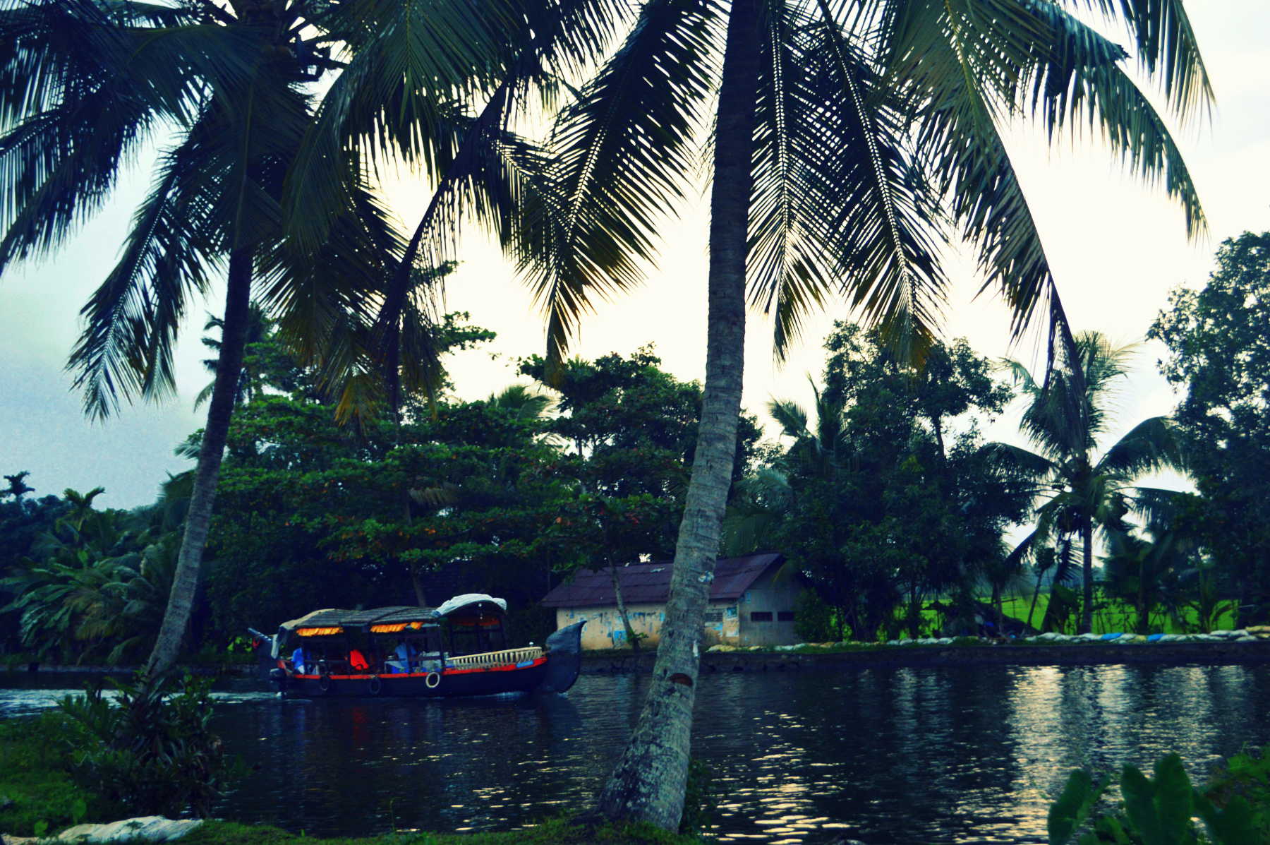 Am nächsten Tag hatte ich meine Präsentation. Sobald ich damit fertig war, fuhr ich zusammen mit einem Freund aus Kerala mit dem Bus in die Stadt Alleppey (oder Alappuzha). Die Backwaters sind die Hauptattraktion von Kerala, und ich wollte unbedingt einen Blick darauf werfen. Obwohl es diese Wasserstraßen in ganz Kerala gibt, wird die, die sich zwischen Alleppey und Kottayam erstreckt, als die schönste angesehen. Außerdem war es die offizielle Saison der Schlangenbootrennen in Kerala, und diese Rennen findet bei einem Dorf nur wenige Kilometer von Alleppey entfernt statt.
