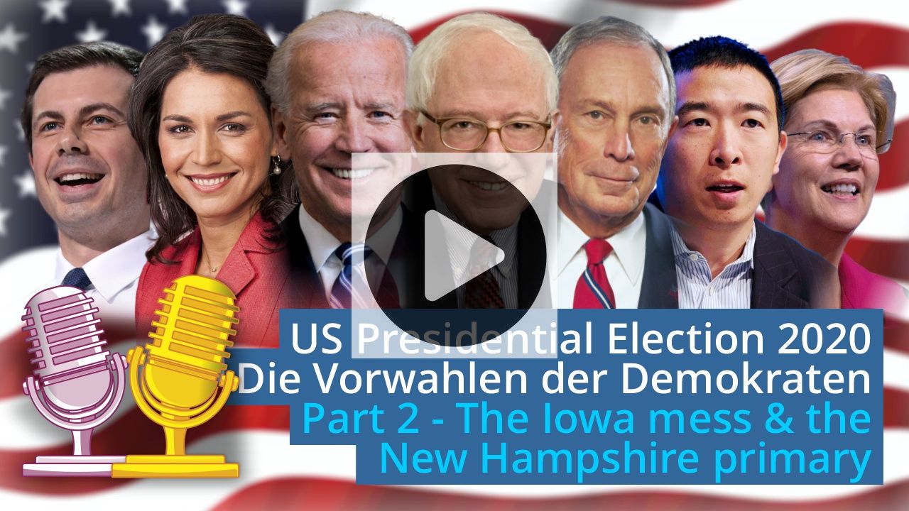 In der zweiten Ausgabe unseres Podcasts zur US-Präsidentschaftswahl 2020 beschäftigen wir uns u.a. mit den chaotischen Vorgängen rund um die erste Vorwahl der Demokraten in Iowa, die am Montag, den 3. Februar stattgefunden hat, und geben Euch ein Vorschau auf die Vorwahl in New Hampshire, die am Dienstag, den 11. Februar stattfinden wird.