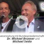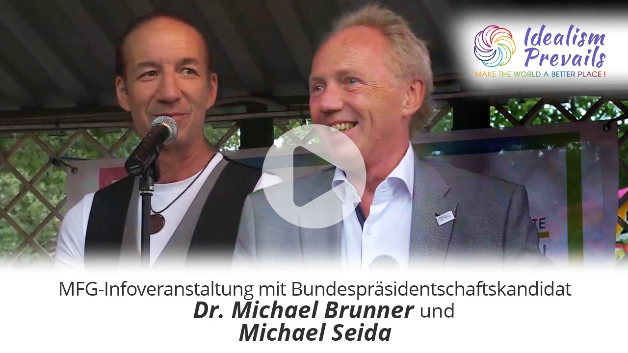 Nach der Vorstellung der Kasperlbühne Schillerdrops stellt Michael Seida den MFG-Bundespräsidentschaftskandidaten Dr. Michael Brunner vor. Er selbst habe ihn während einer Veranstaltung von „Menschen zeigen Gesicht“ im Vorjahr kennen gelernt. Dieser sei für ihn ein Botschafter, der selbst die Botschaft sei.
