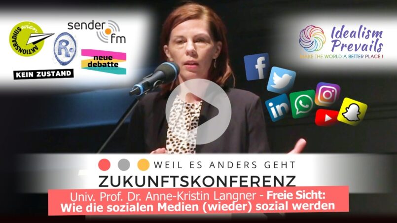 In ihrem Vortrag behandelt Univ.-Prof. Dr. Anne Kristin Langner die Entwicklung sozialer Medien, deren Regeln und Beschaffenheiten, die Notwendigkeit, den Begriff „sozial“ wieder zu integrieren sowie einen Ausblick in eine gelungene Zukunft von sozialen Netzwerken.