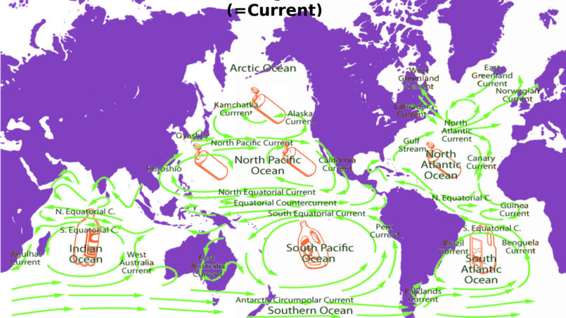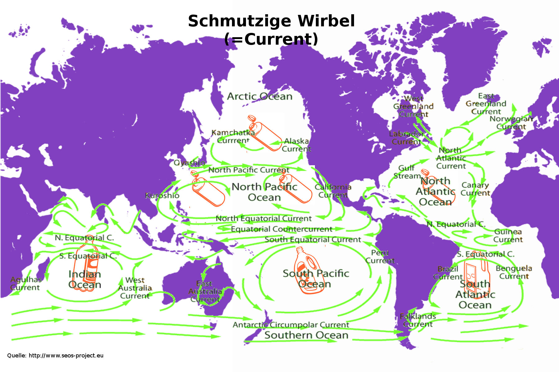 Und dieses Plastik, das wir produzieren, gelangt irgendwann ins Meer. Das sind vorwiegend Teile aus Polyethylen und Polypropylen, die wir an der Oberfläche treibend finden. Das ist nicht gleichmäßig im Meer verteilt, sondern sammelt sich in den Strudeln, die durch die Meeresströmungen verursacht werden. Das ist das, was wir die „Greater Plastic Garbage Patches“ nennen.