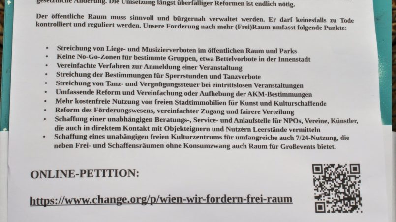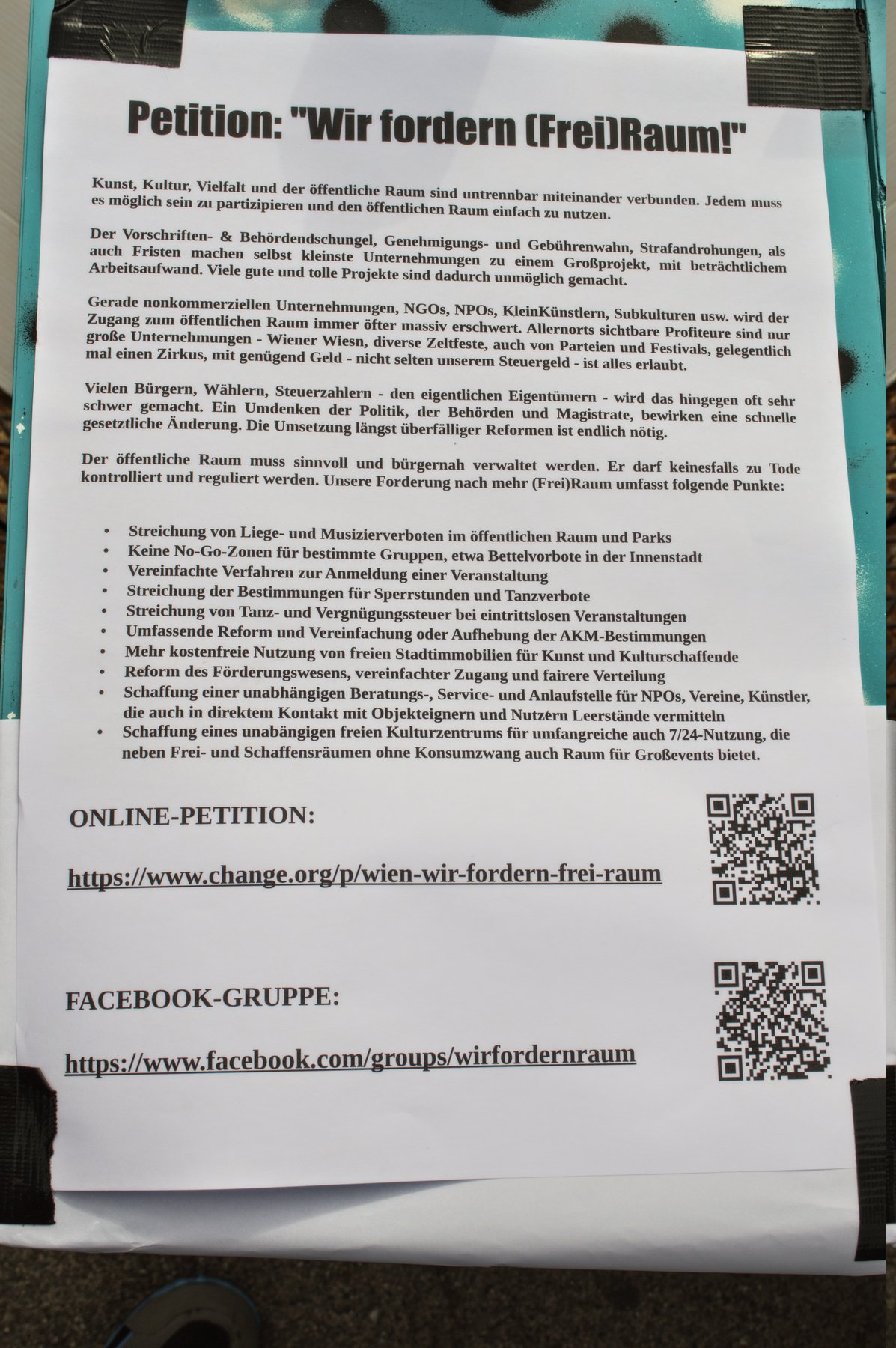 Mit „Wir fordern (Frei-)Raum“ startete am Samstag, den 17. September auf der PeaceParade Vienna 2016 eine Petition.