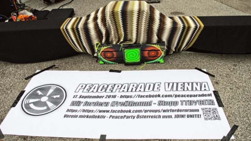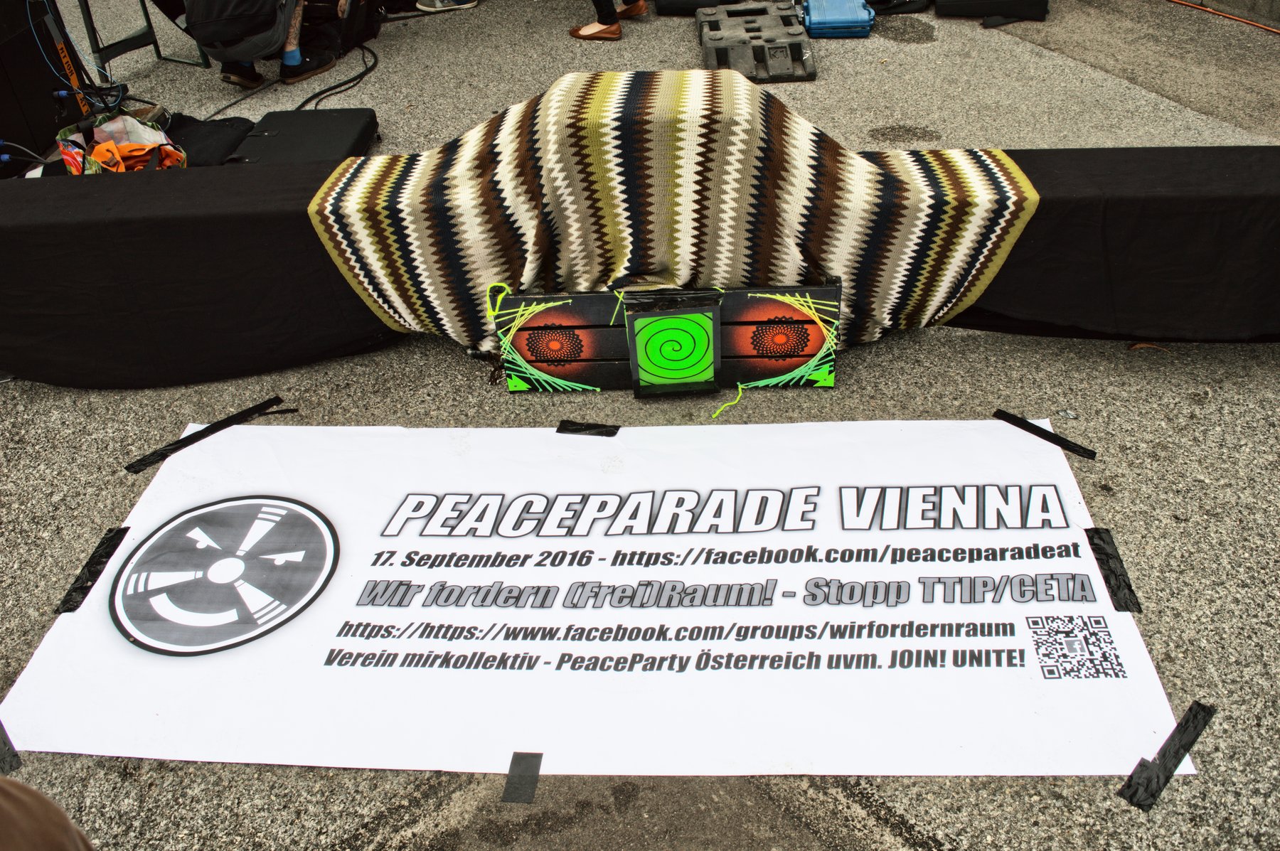 Die diesjährige PeaceParade Vienna wurde nicht nur von zahlreichen Soundsystems unterstützt. Gleich drei Vereine, die sich politisch in den letzten Jahren in der Gesellschaft engagieren, zeigten vor, wie Frieden funktioniert. In Wirklichkeit handelt es sich hier um ein kleines Team aus versammlungserfahrenen Leuten, die bereits oft miteinander gearbeitet haben und effektiv kooperieren können. In Teamarbeit schaffen sie die Rahmenbedingungen, damit diverse Gruppen auch teilnehmen können.